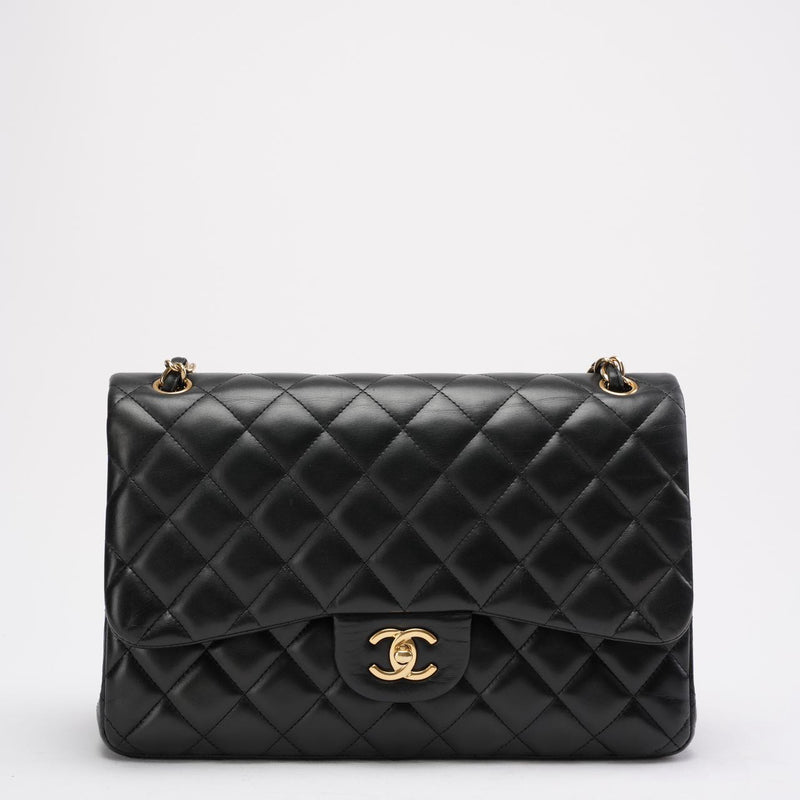 An iconic symbol of Chanel heritage, this 2011 Classic Jumbo Double Flap is crafted from supple black lambskin, prized for its luxurious softness and refined finish. The timeless diamond quilting is complemented by rich gold-tone hardware and the signature interlocking CC turn-lock, creating an unmistakably elegant silhouette.