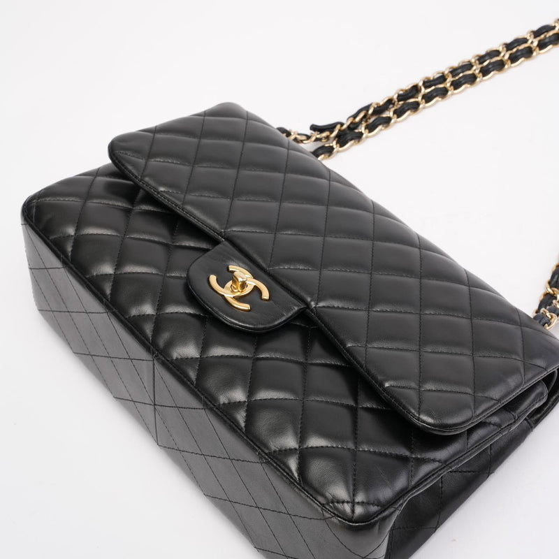 Chanel Black Classic Jumbo Double Flap Bag Lambskin 2011