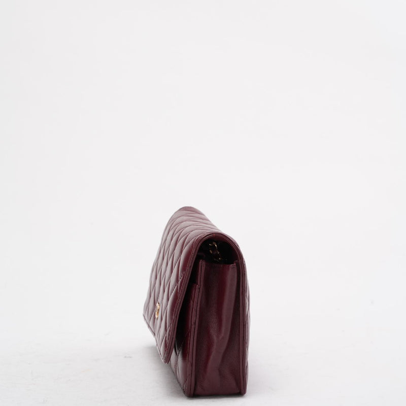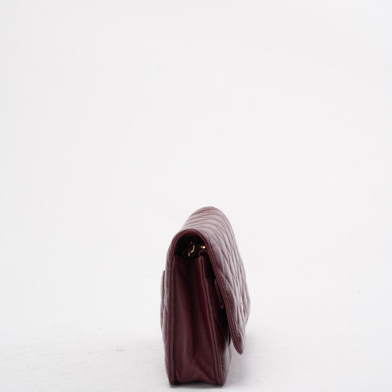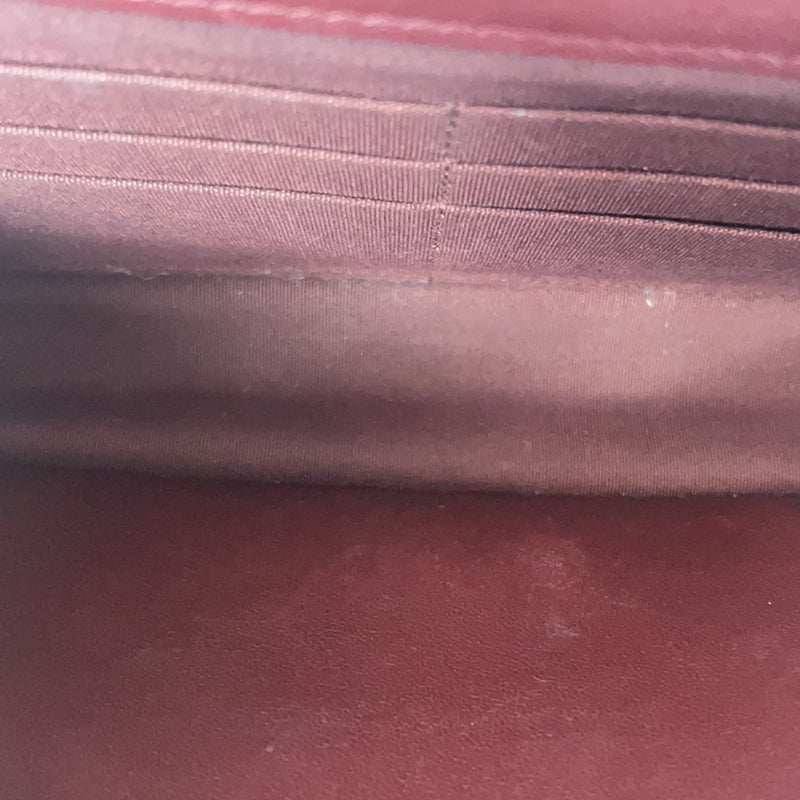 Compact yet spacious enough for essentials, it features multiple card slots, a zippered pocket, and a chain leather-interwoven strap that allows it to be worn crossbody or on the shoulder. The deep burgundy tone makes it a versatile and sophisticated choice for both day and evening wear.