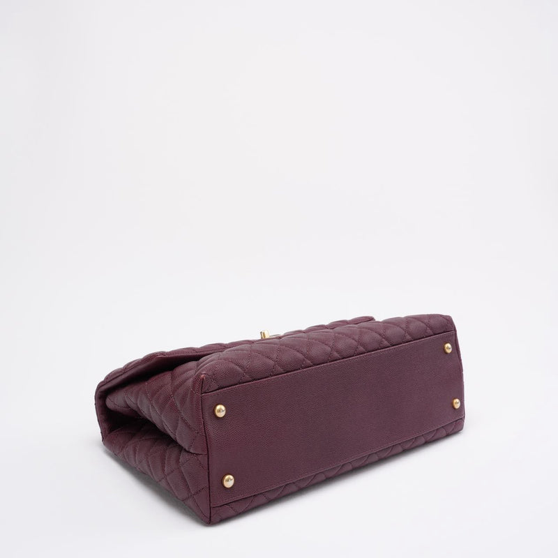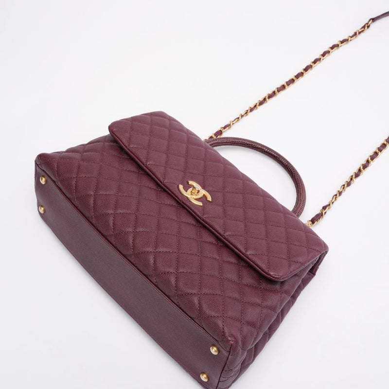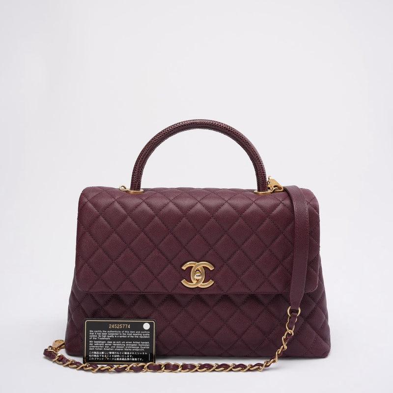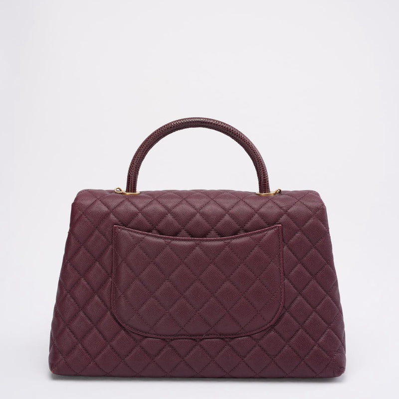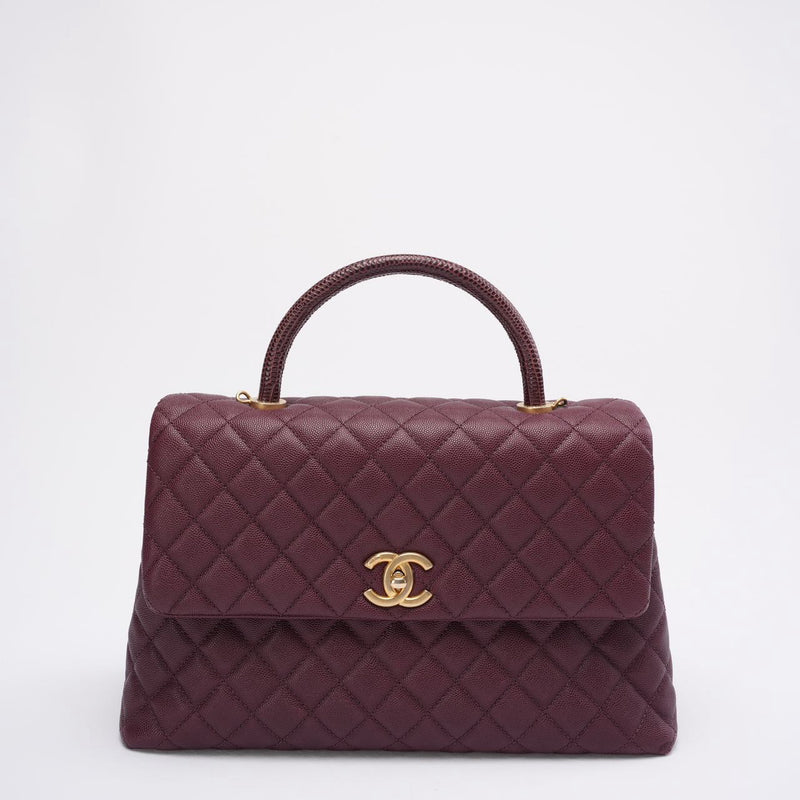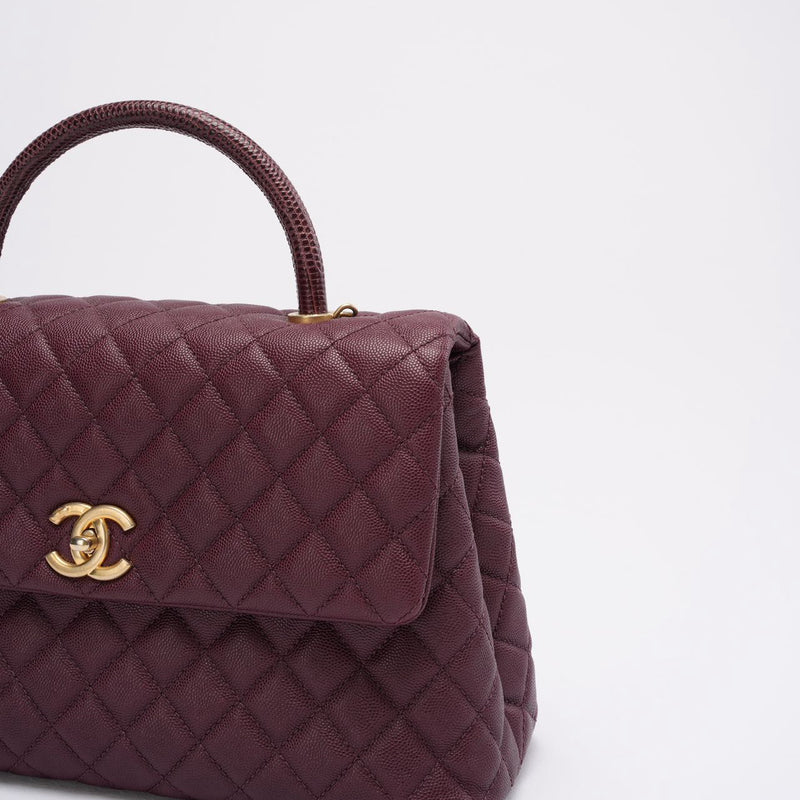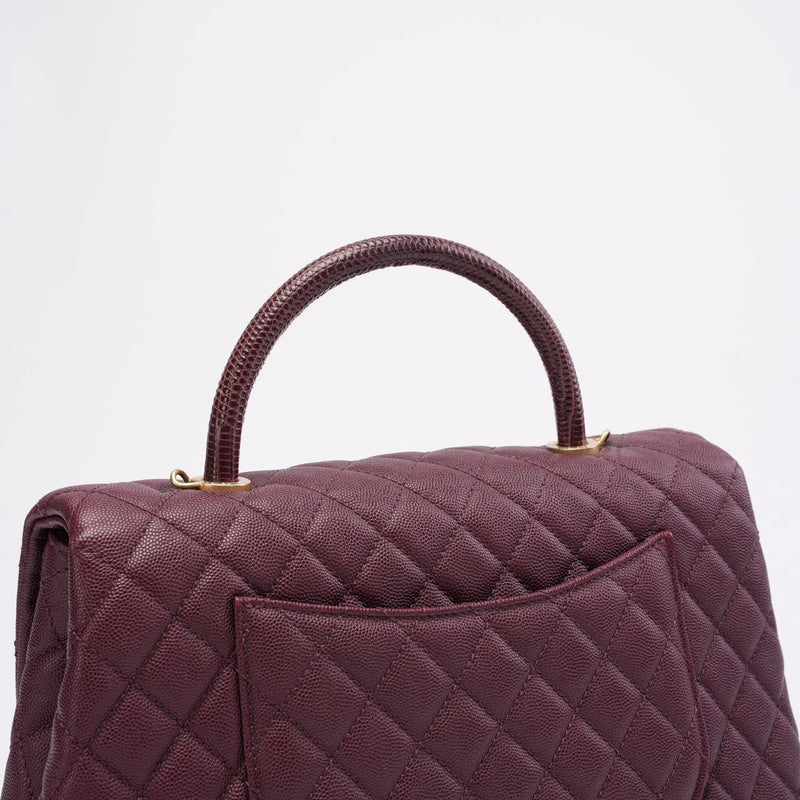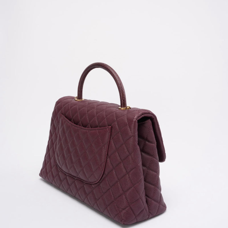 Chanel Burgundy Quilted Coco Lizard Handle Flap Caviar 2017