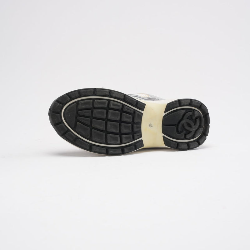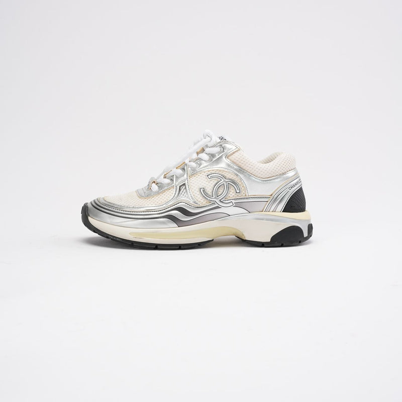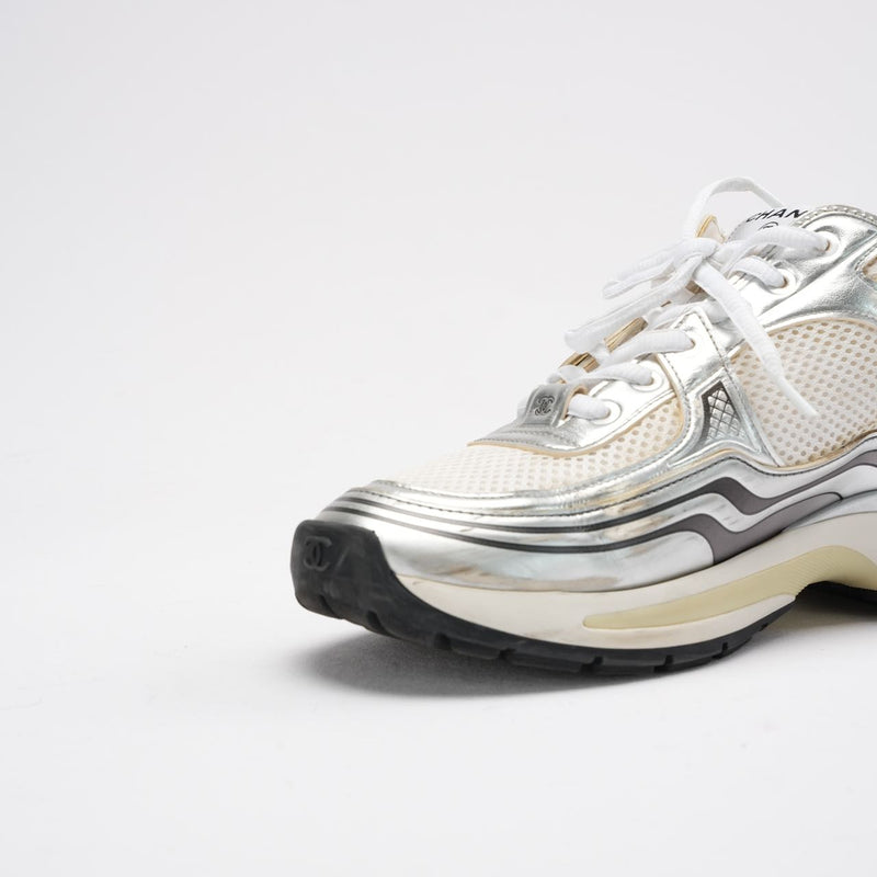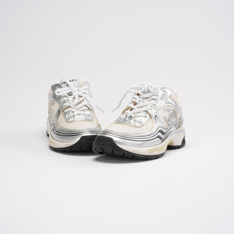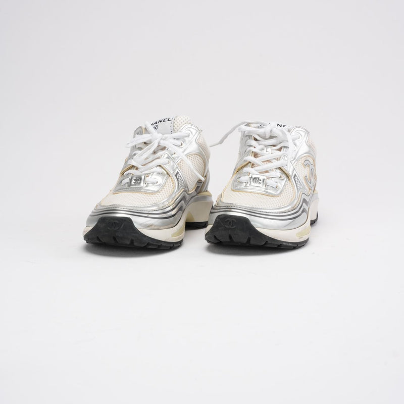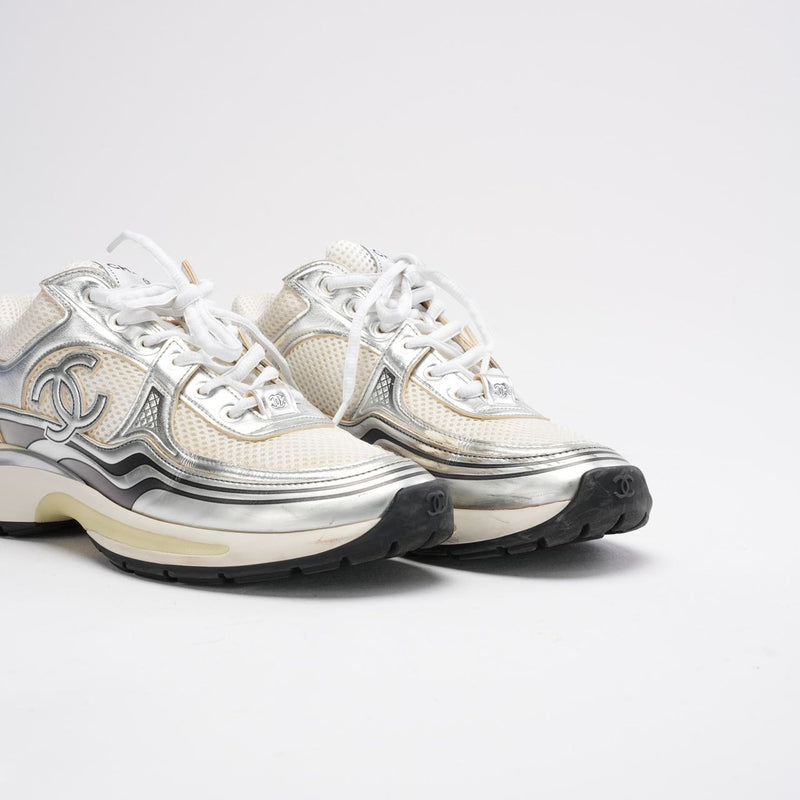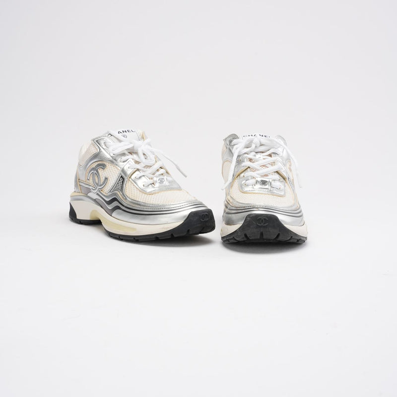 Chanel CC Logo Sneaker in White and Silver 38.5
