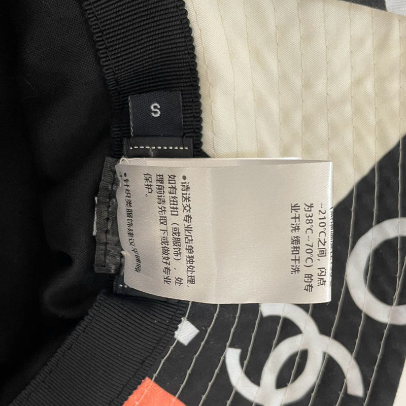 Chanel Cotton Logo Cloche Hat Bucket Hat Ecru / Black / Pink Pre-Loved