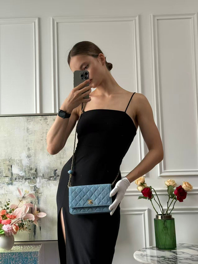 Chanel Denim Wallet On Chain (Woc) CC Pearl Crush Bag from 2022
