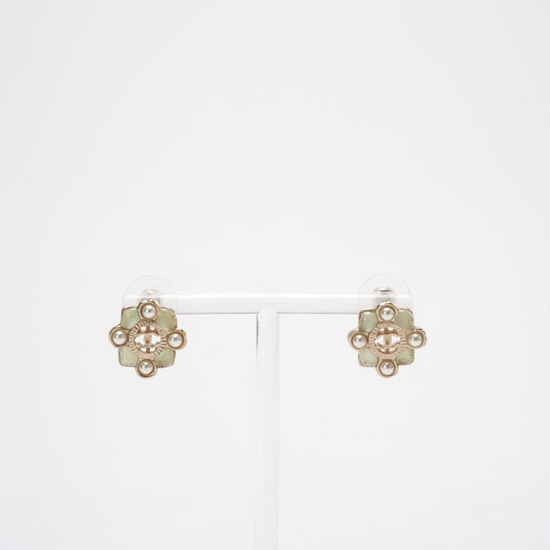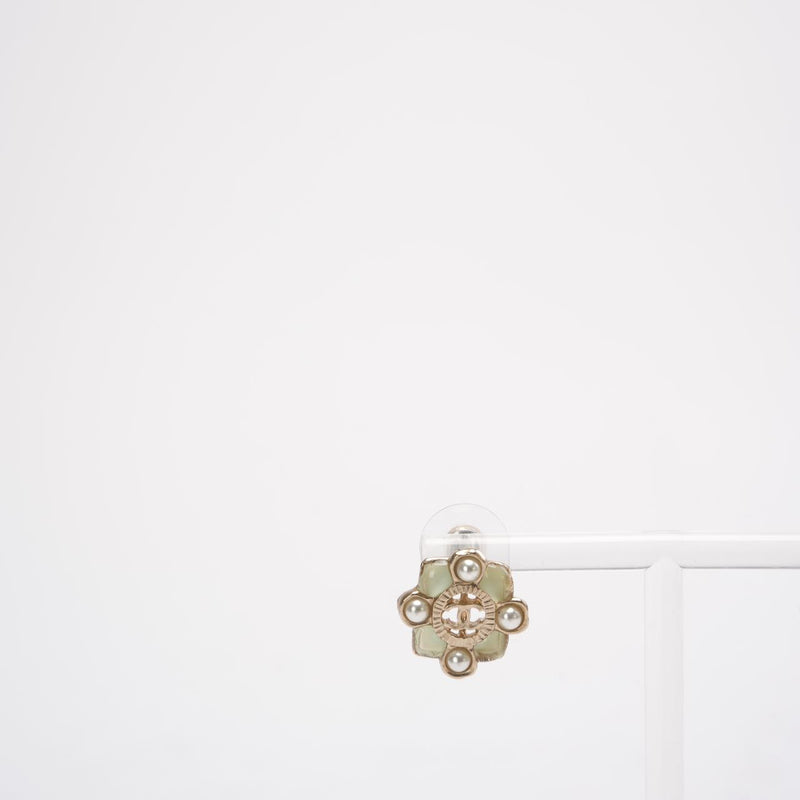 Chanel Gold CC Resin and Faux Pearl Push Back Earrings