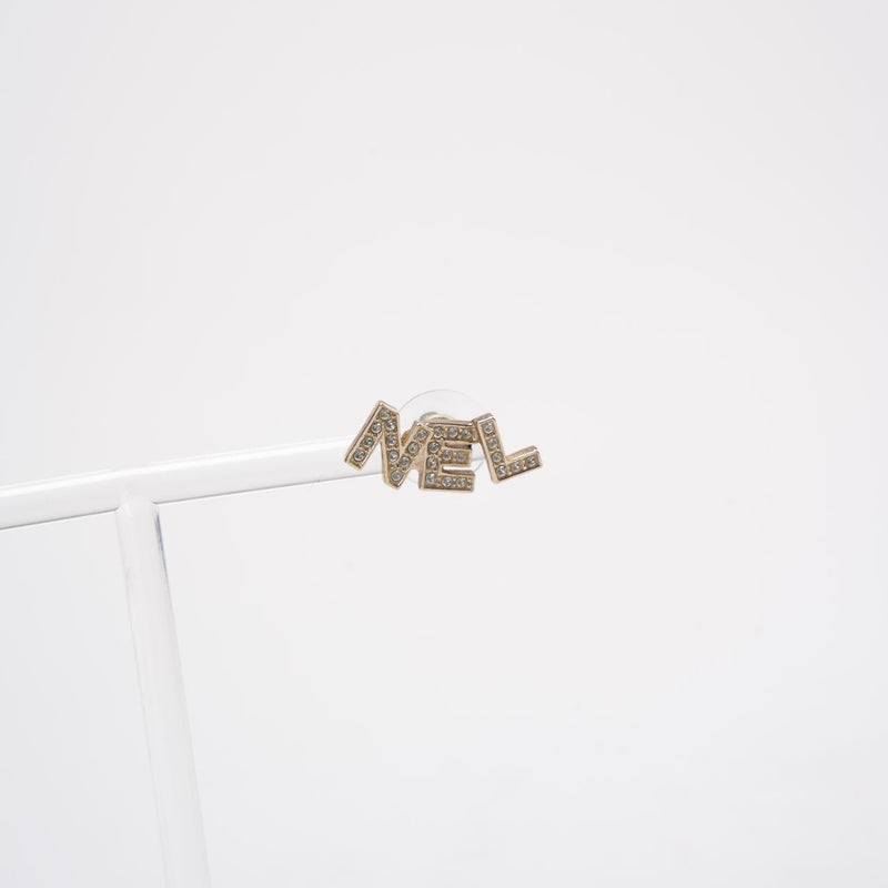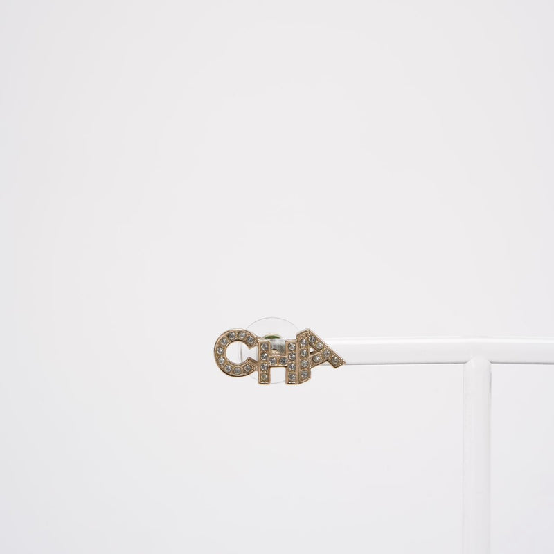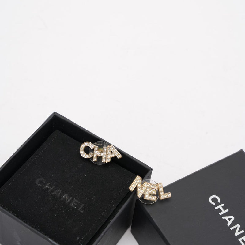 Chanel Gold Metal And Crystal Logo Letter Stud Earrings
