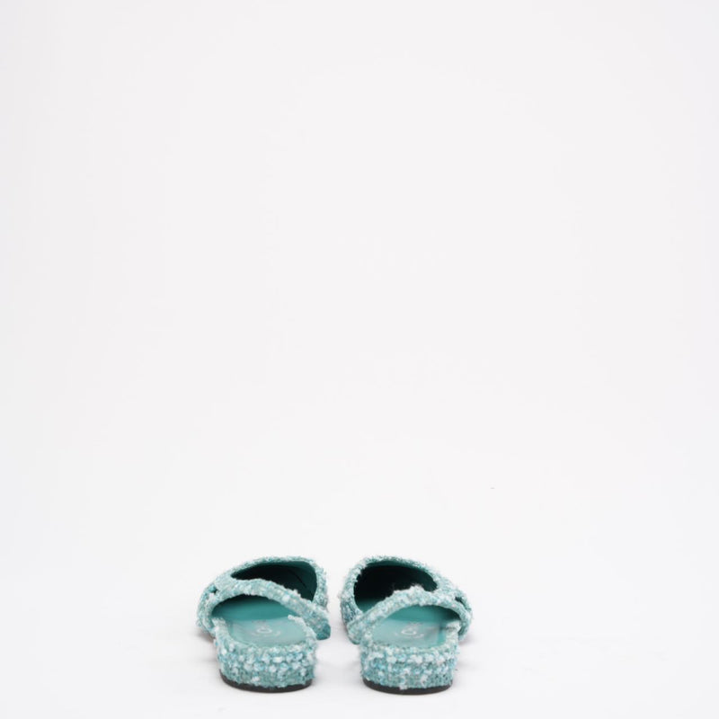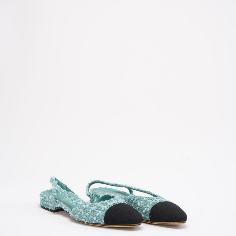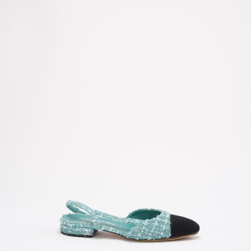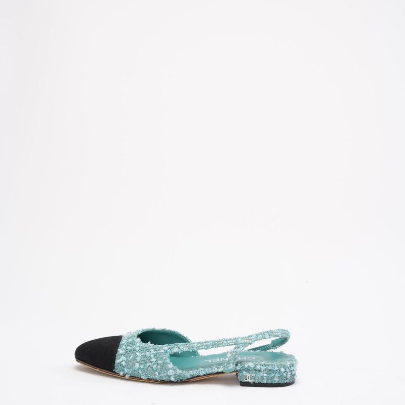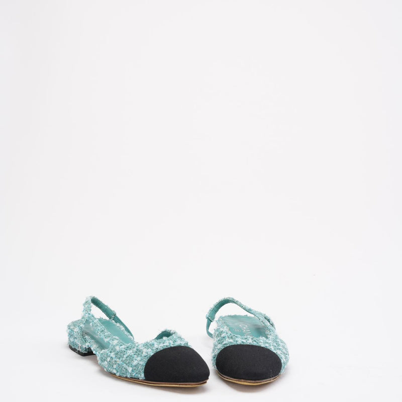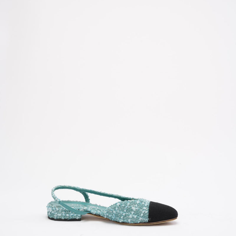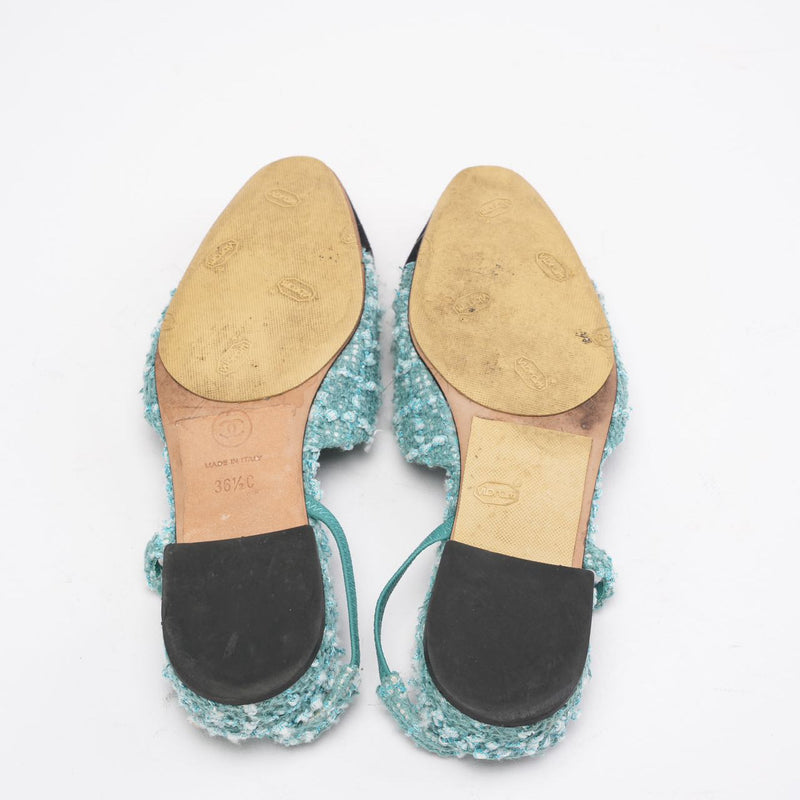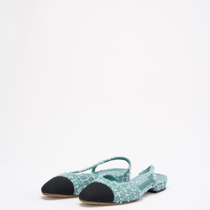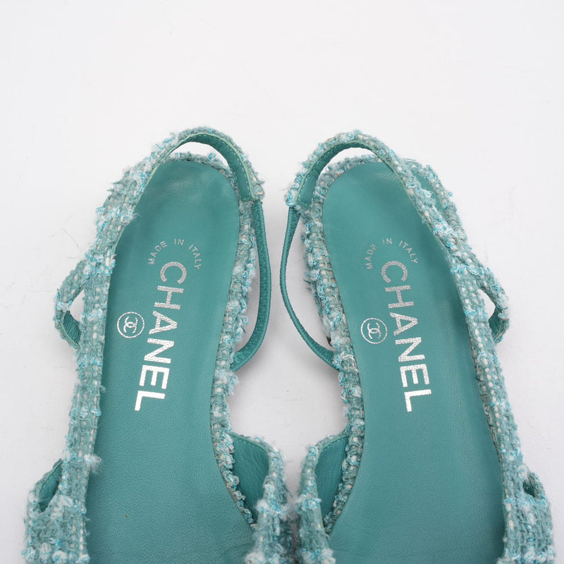 Chanel Turquoise/ Green Color Tweed Cap Toe CC Slingback 36.5C