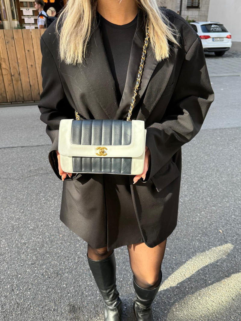 Chanel Vintage Timeless Classic Navy and White Flap Bag