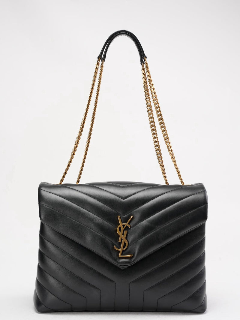 Elegant, modern, and effortlessly chic — the Saint Laurent Loulou Medium Shoulder Bag is one of the brand’s most iconic designs. Crafted from luxurious black quilted leather, this bag features the signature YSL in stunning golden hardware, giving it an instantly recognizable and timeless finish.