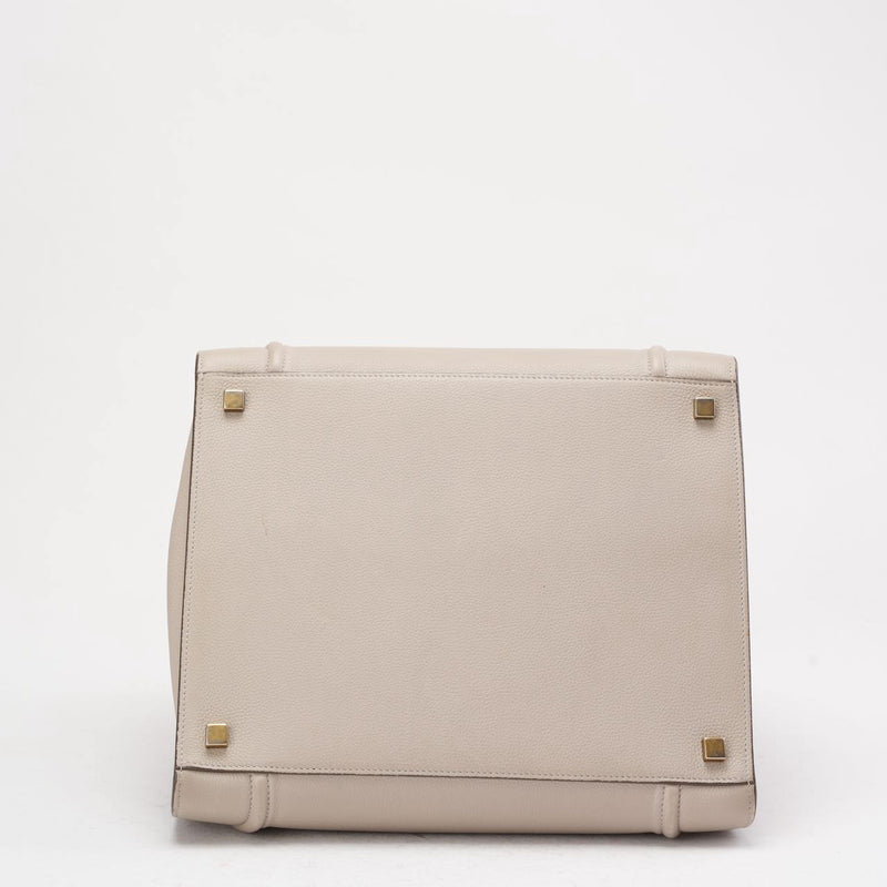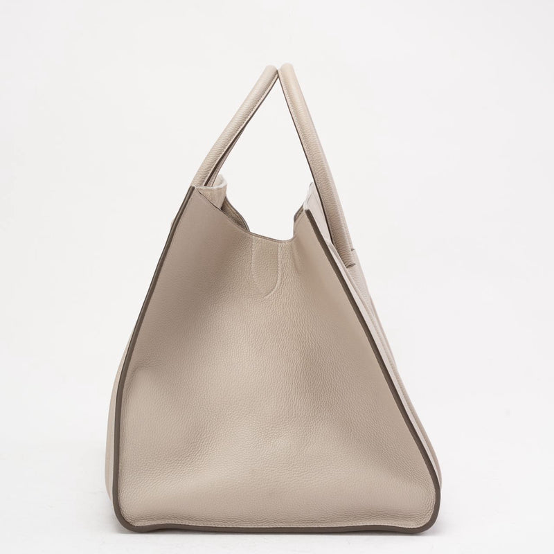 A true icon of modern luxury, the Celine Phantom Luggage Tote remains one of the most sought-after silhouettes in contemporary fashion. This stunning 2014 edition comes in a chic gray leather, beautifully complemented by gold-tone hardware—a rare and elegant combination that elevates its timeless appeal.