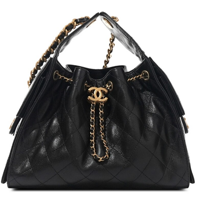 The Chanel 25 Small Black Bag with Aged Gold Hardware (2025) is a timeless embodiment of Chanel’s classic elegance and modern sophistication. Crafted from durable black caviar leather, it features the maison’s signature diamond quilting and the iconic interlocking CC turn-lock clasp in aged gold hardware, adding a vintage-inspired touch.