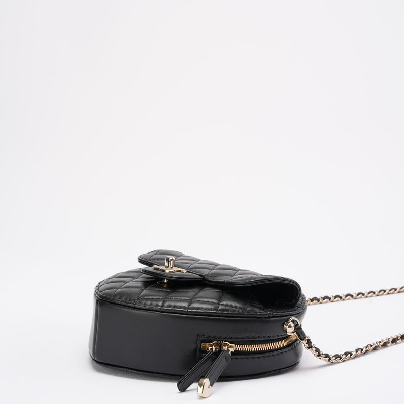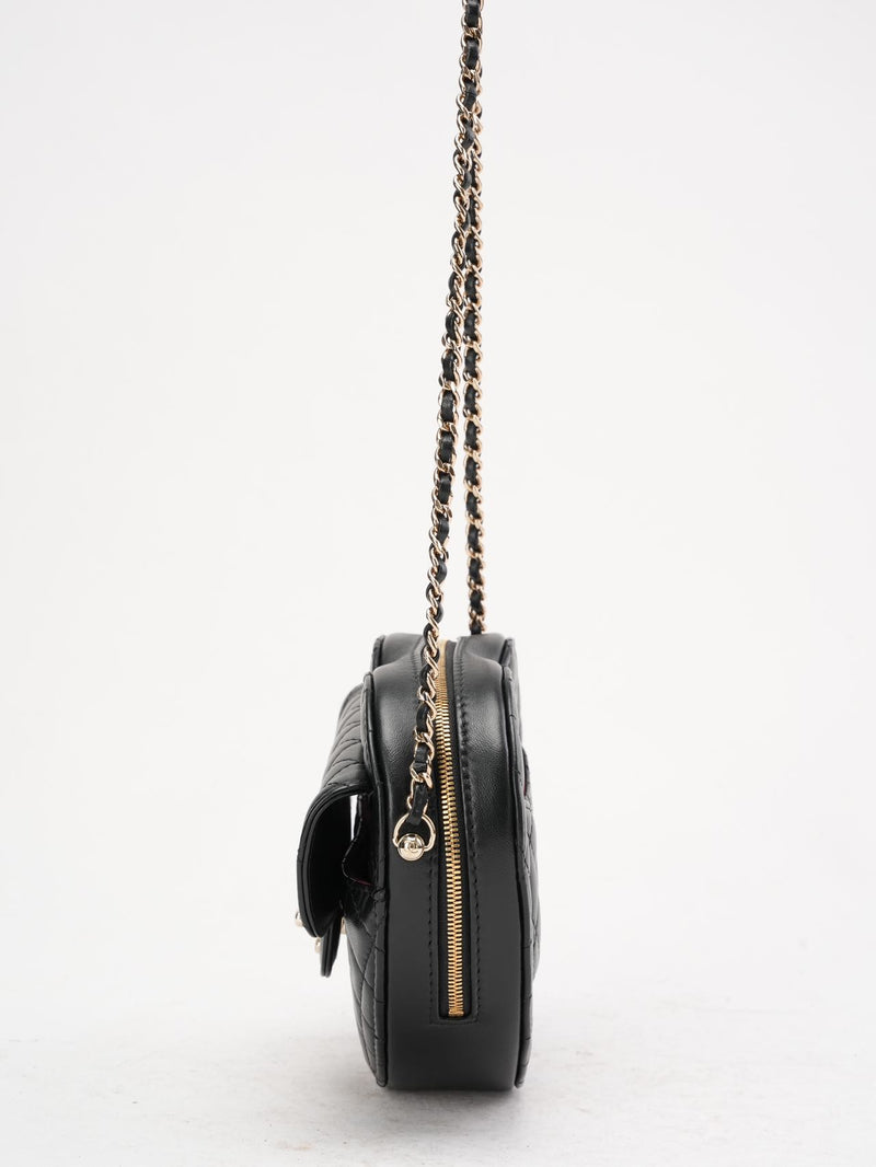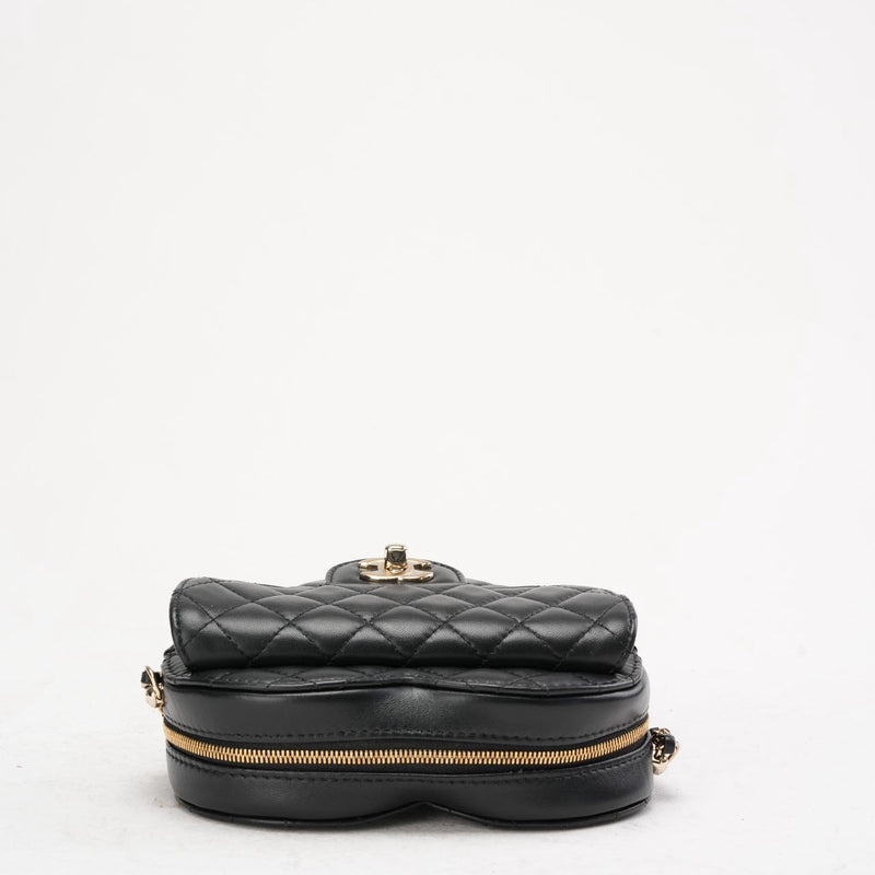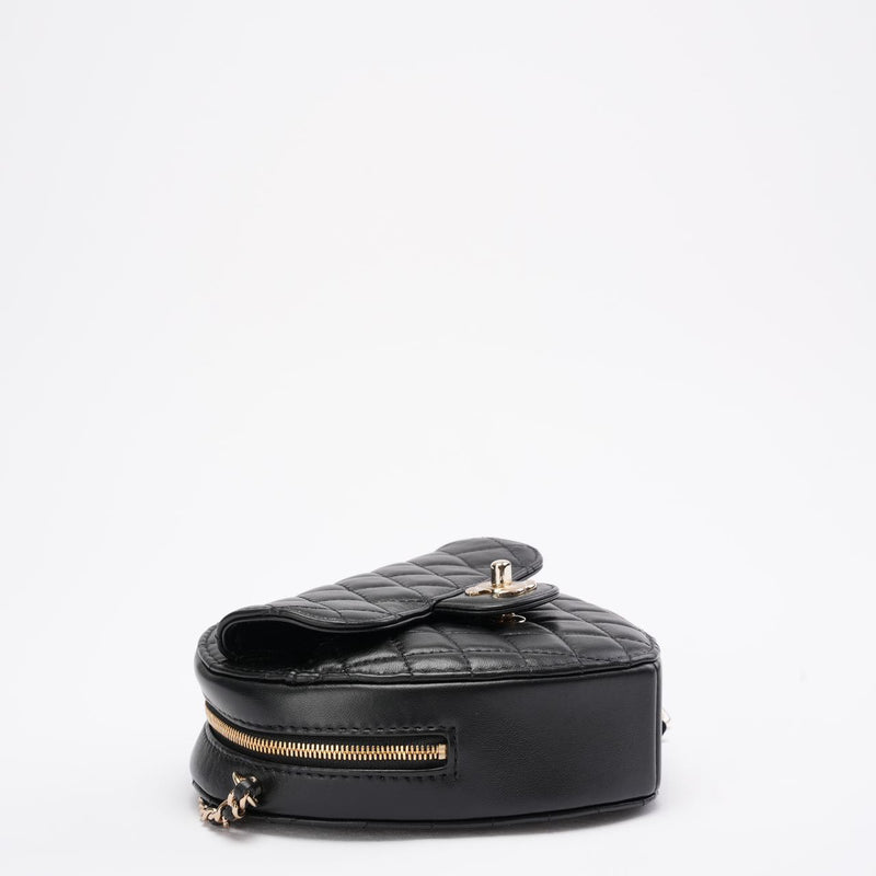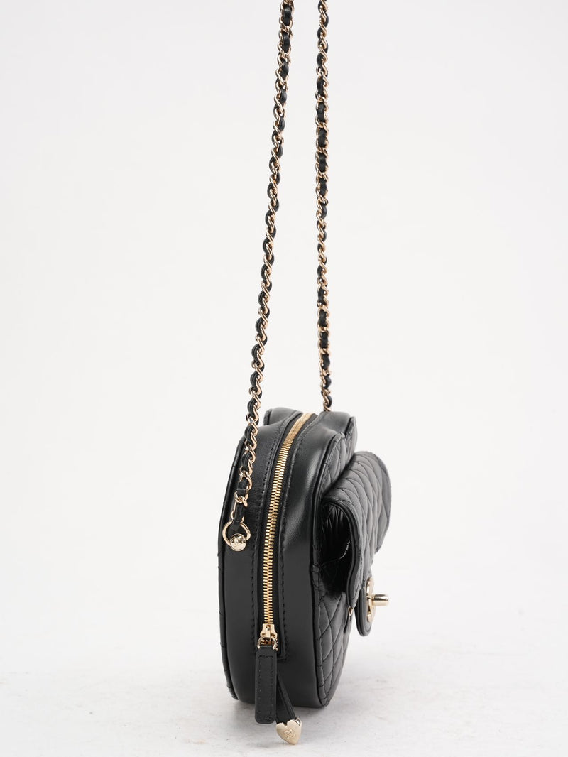 Chanel Clutch aus schwarzem Lammleder mit gestepptem CC-Logo in Herzform und Kette, Modell 2022