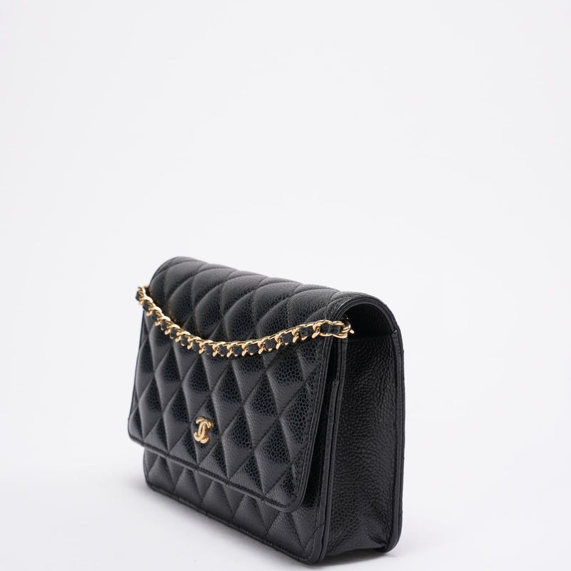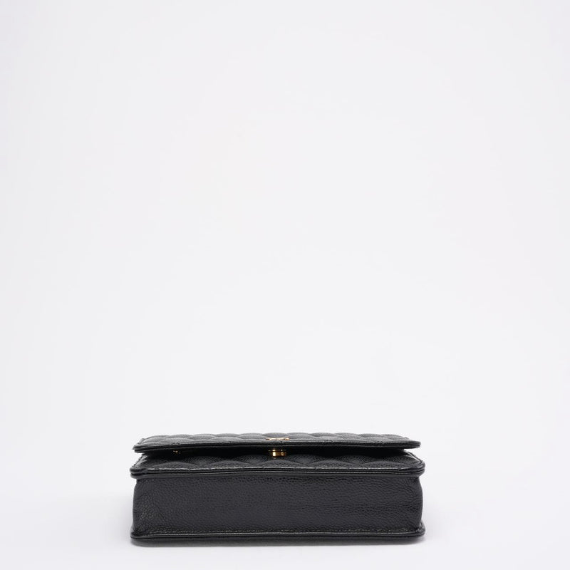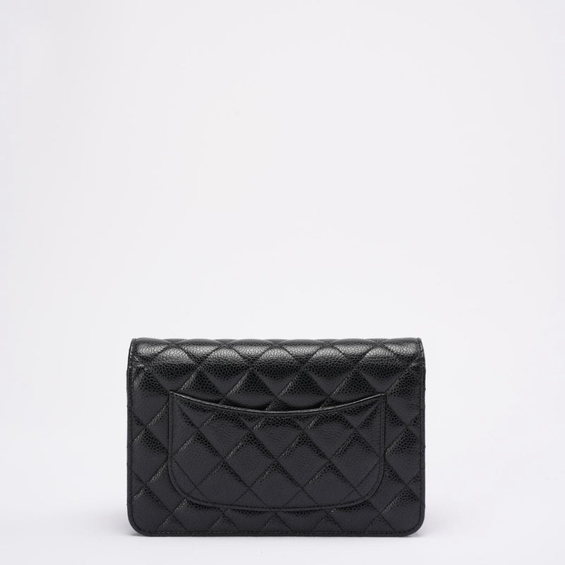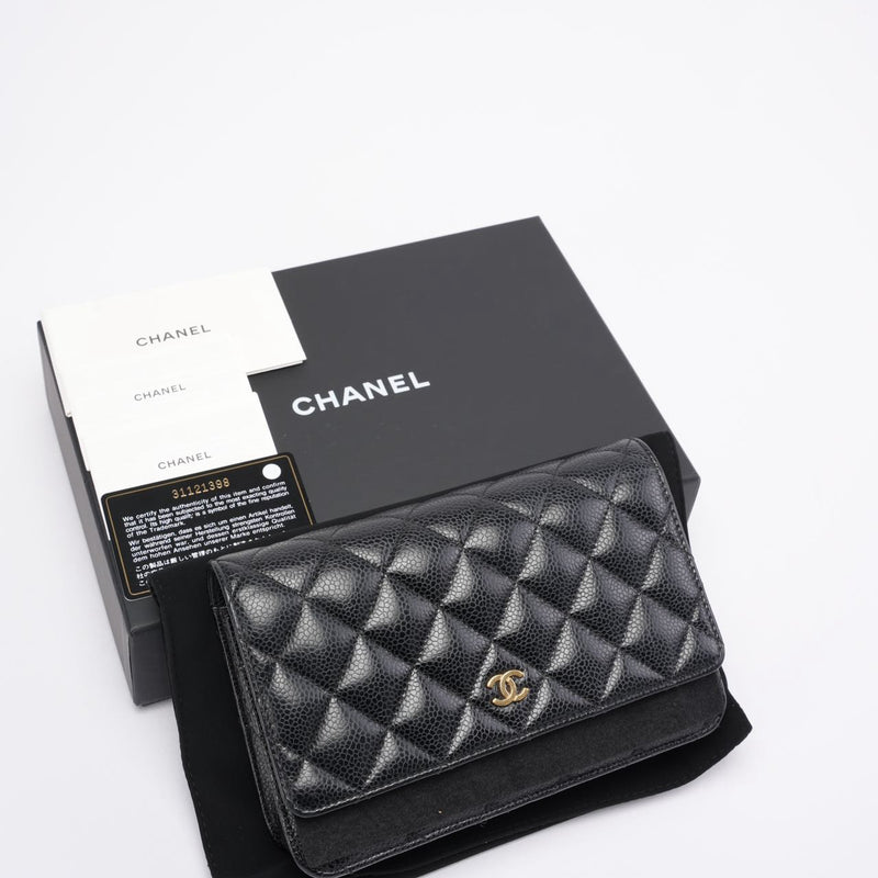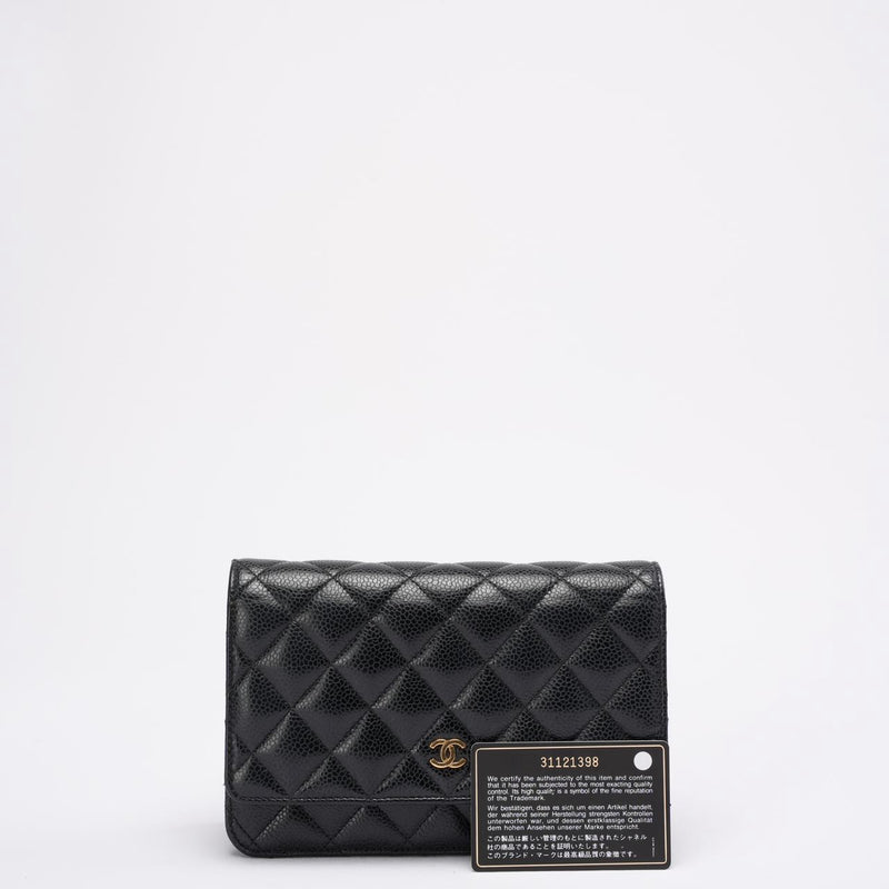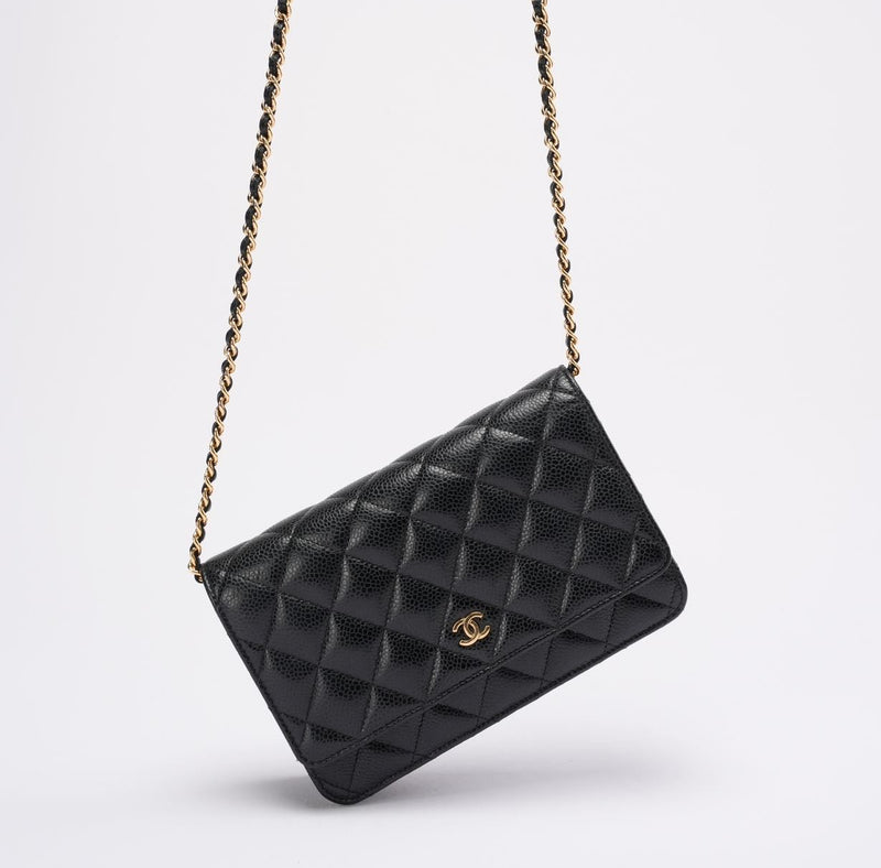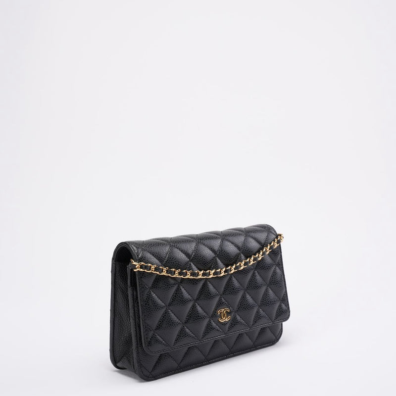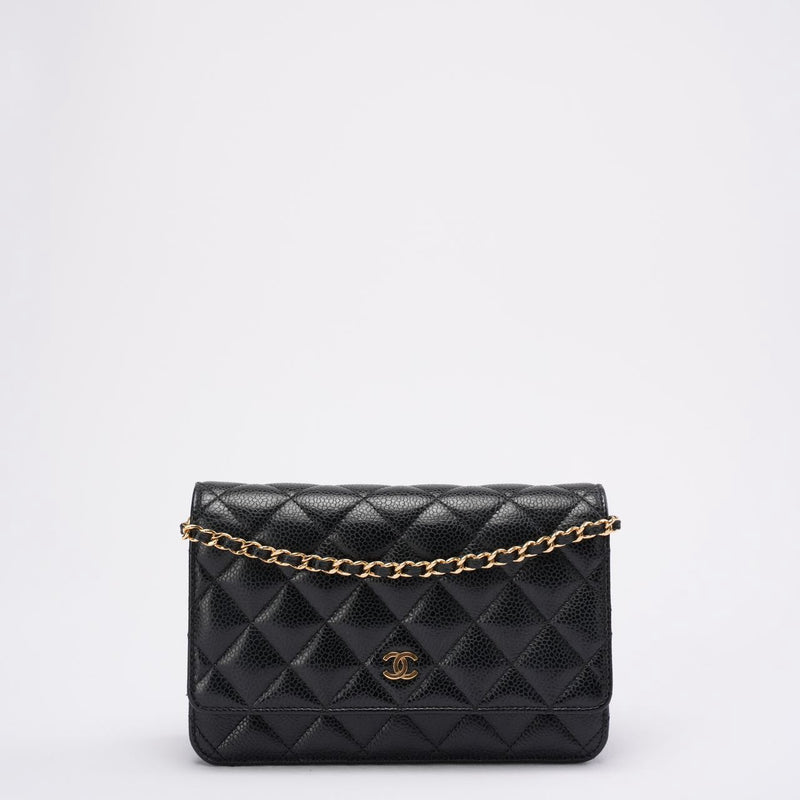 Diese Wallet on Chain aus dem Jahr 2021 ist ein zeitloser Klassiker im Chanel-Universum und wird aus dem begehrten schwarzen Caviar-Leder des Hauses gefertigt – bekannt für seine Widerstandsfähigkeit, seinen dezenten Glanz und seine elegante Textur. Die ikonische Rautensteppung und der polierte goldfarbene CC-Verschluss unterstreichen den zeitlosen Charme des Designs und machen es zu einem Accessoire, das mühelos Saisons und Trends überdauert.