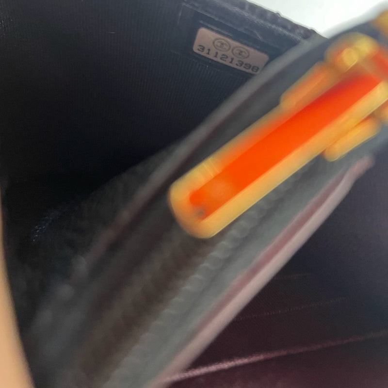 Chanel Klassische Geldbörse mit Kette aus schwarzem, gestepptem Kaviarleder 2021