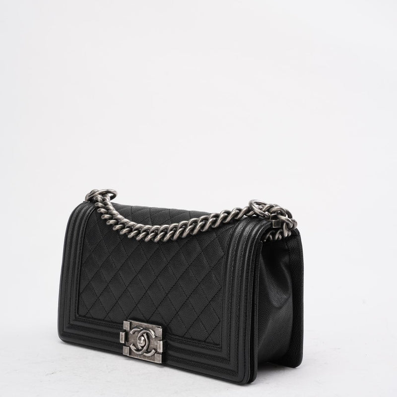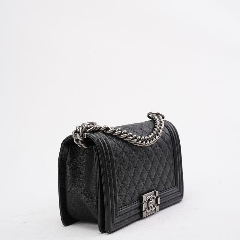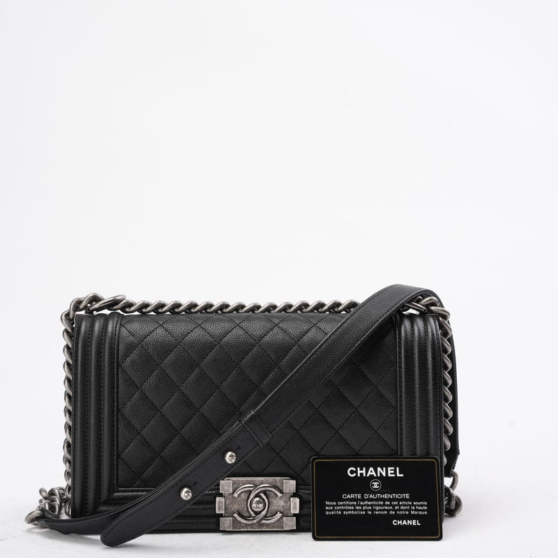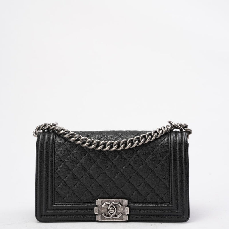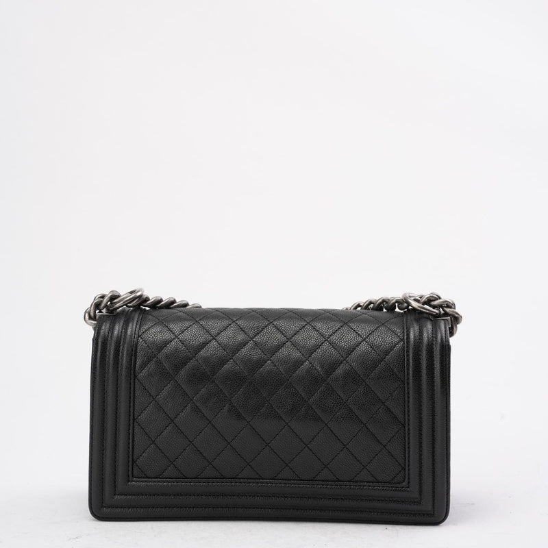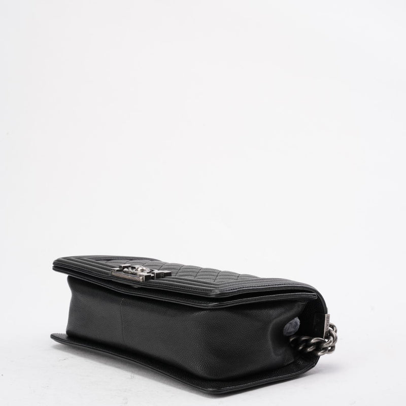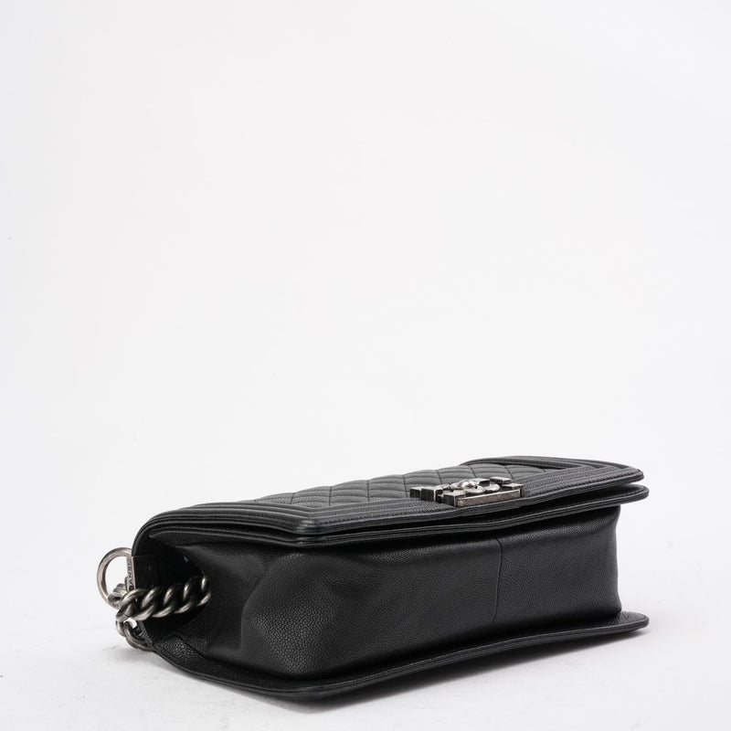 Chanel Boy Medium Black Flap Bag Quilted Caviar 2017