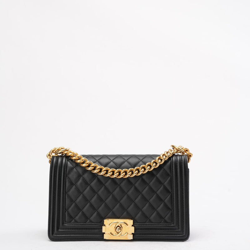 Chanel Boy Medium Black Flap Bag Quilted Caviar 2019