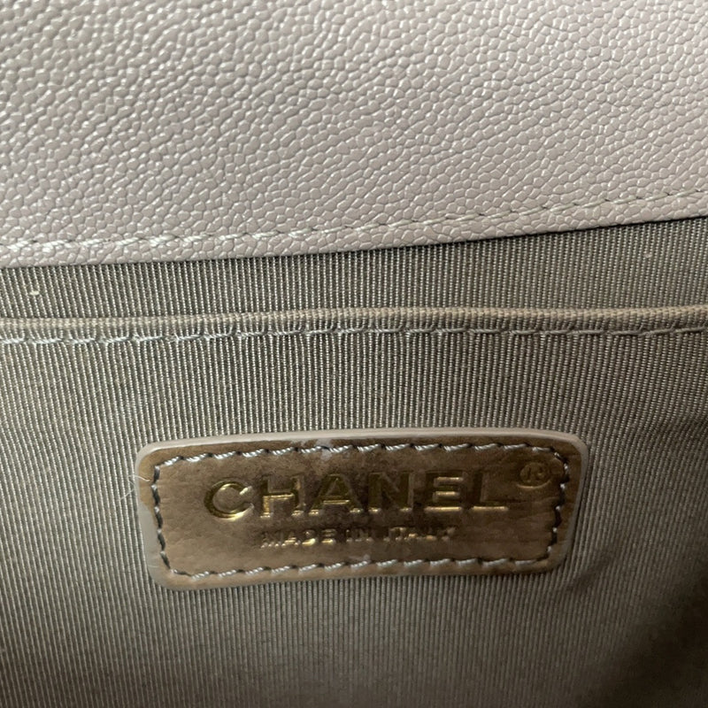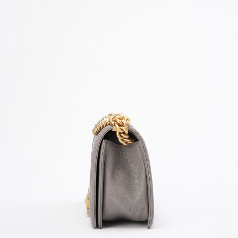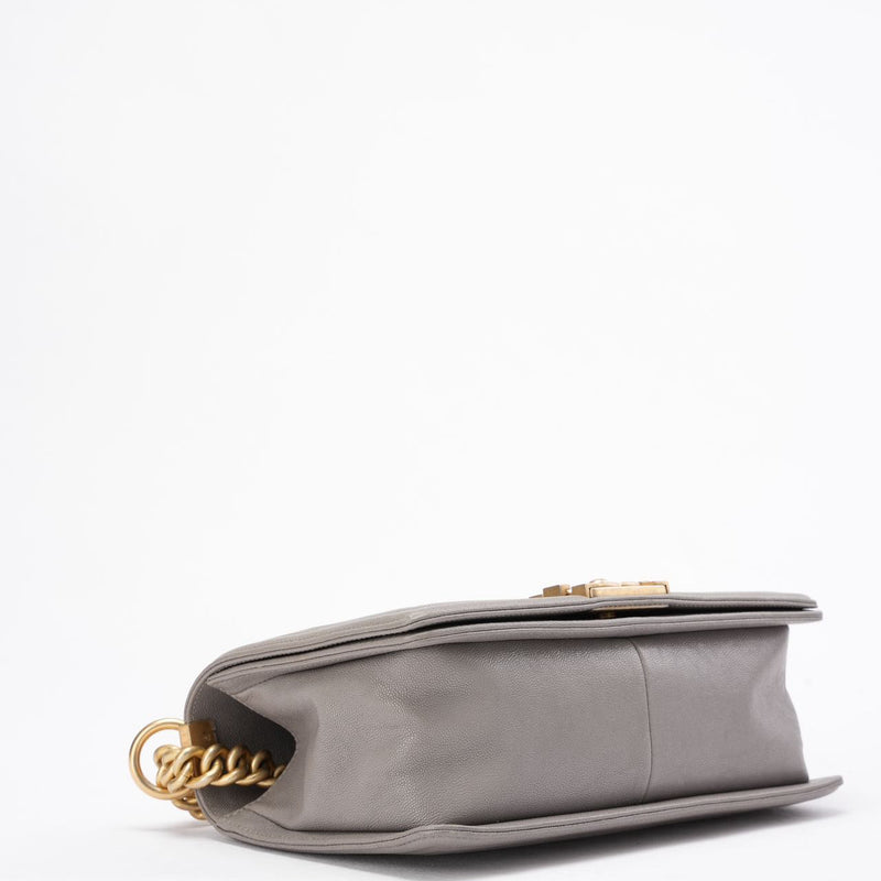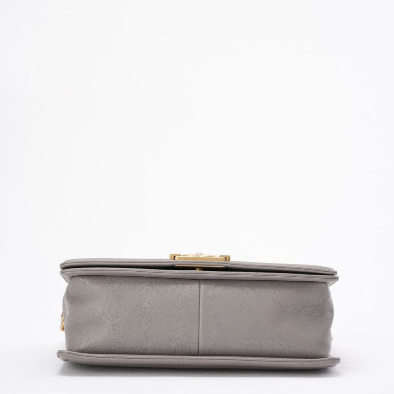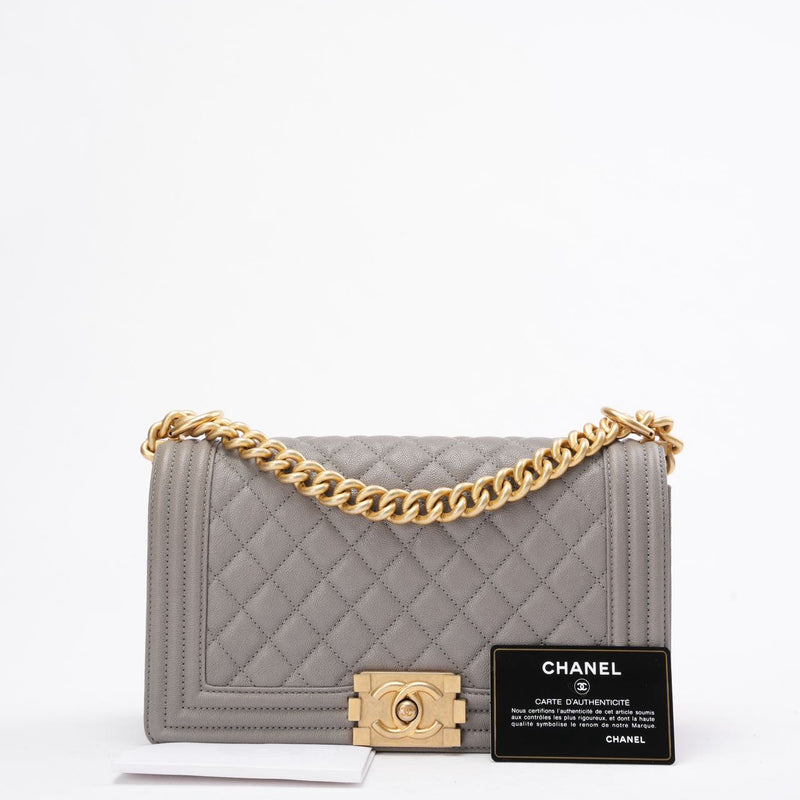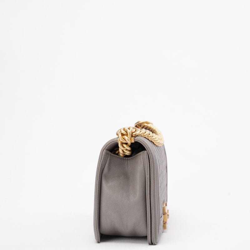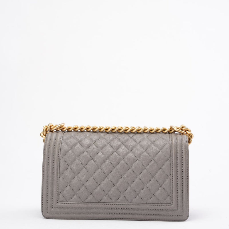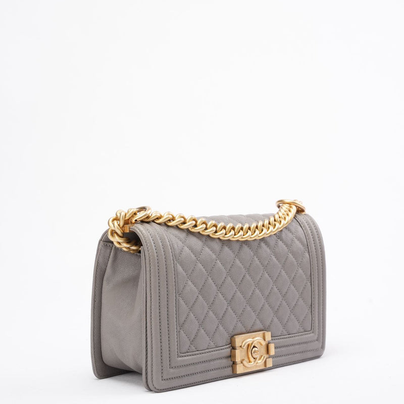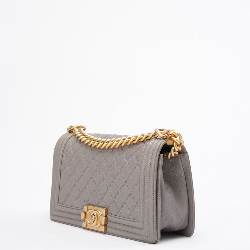 Chanel Boy Medium Grey Flap Bag Quilted Caviar 2019