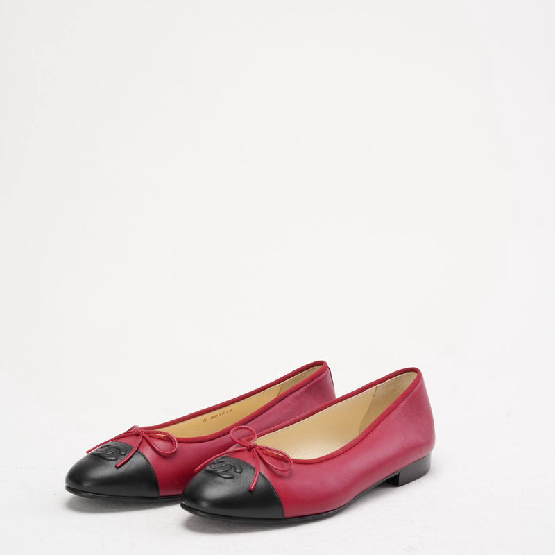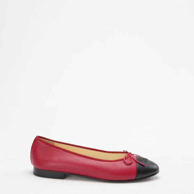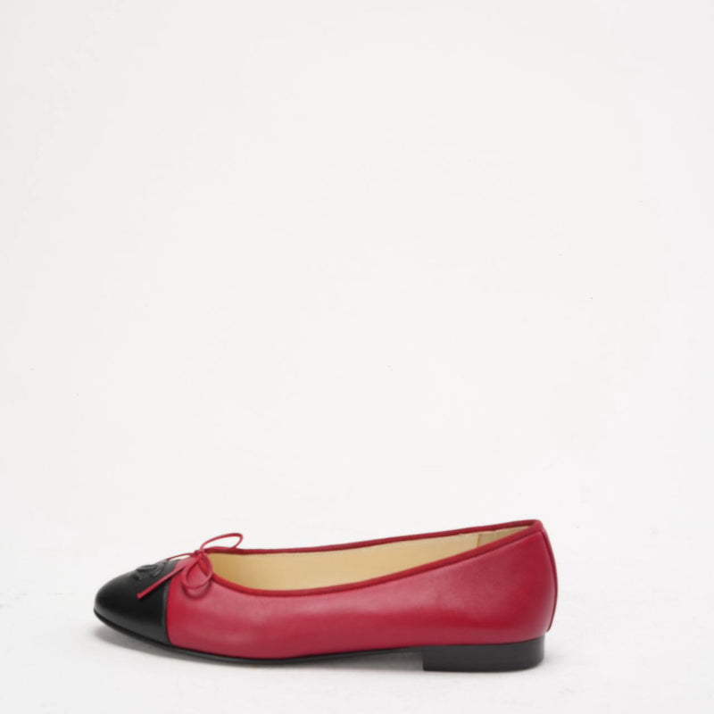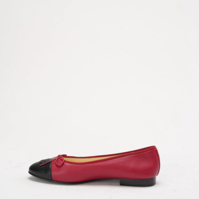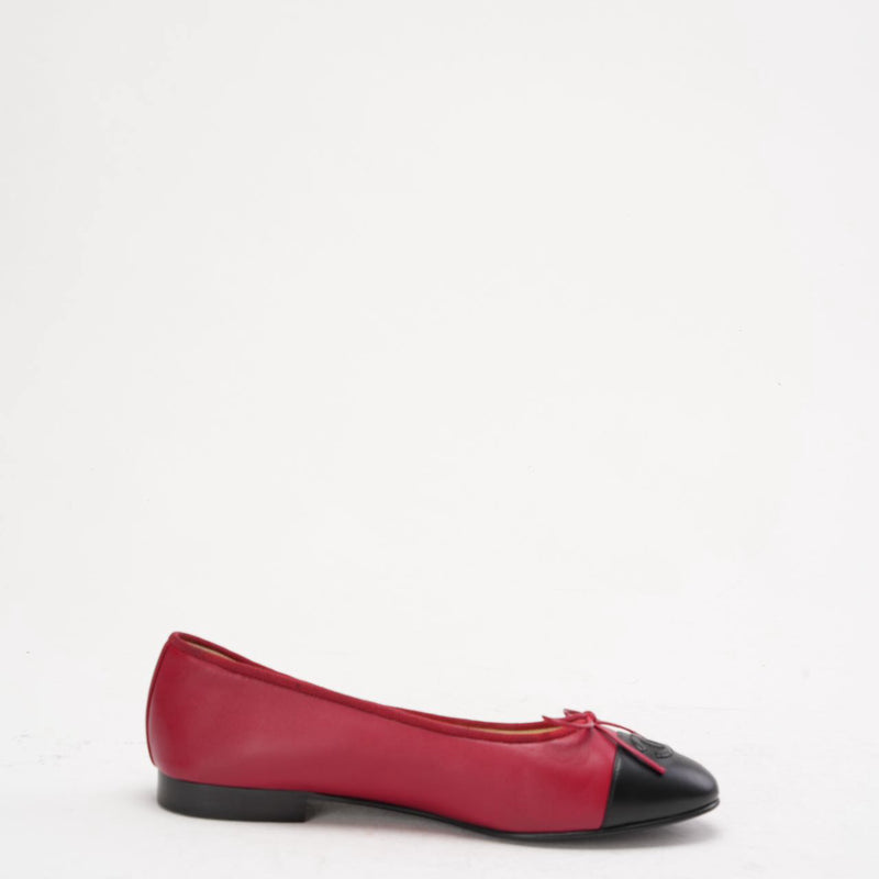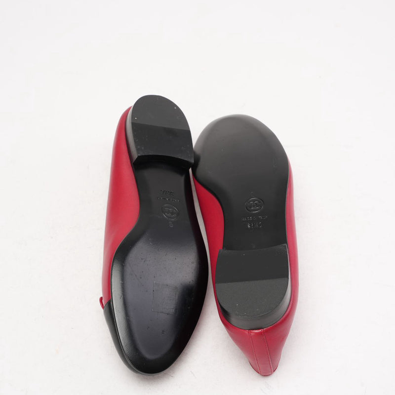 Chanel Ballerinas aus rotem/schwarzem Leder mit CC-Kappe, Größe 38,5