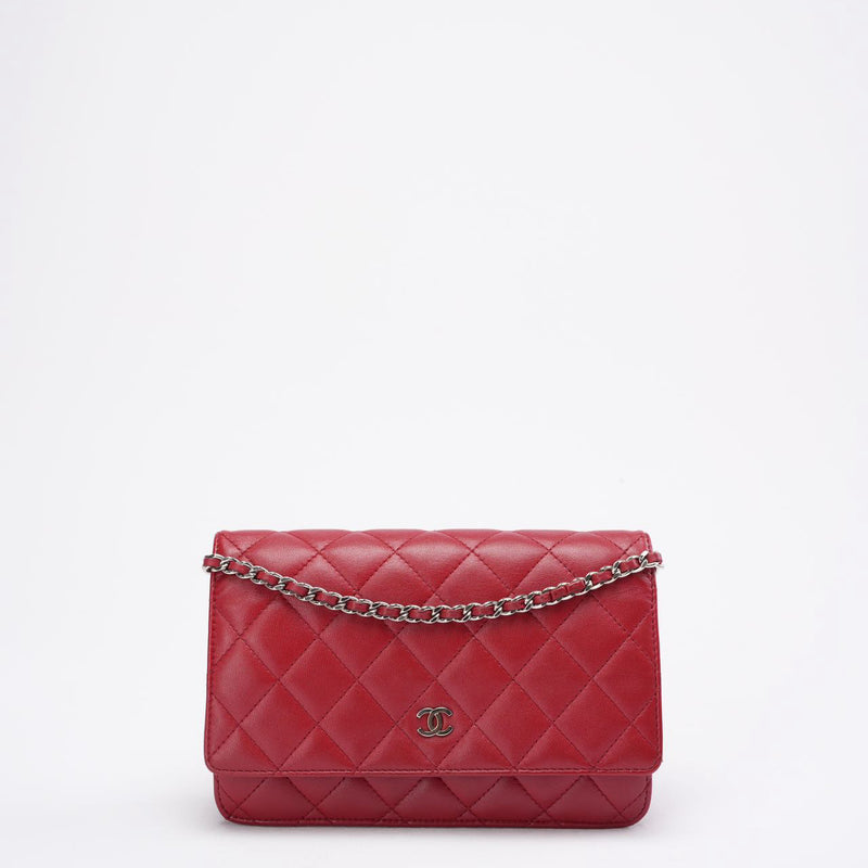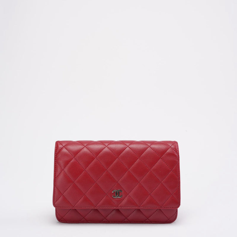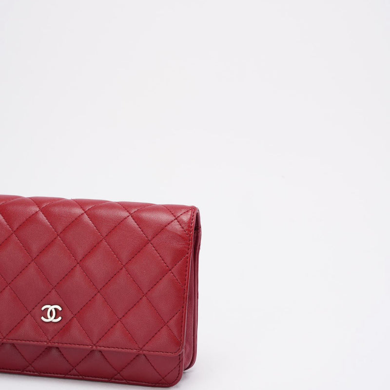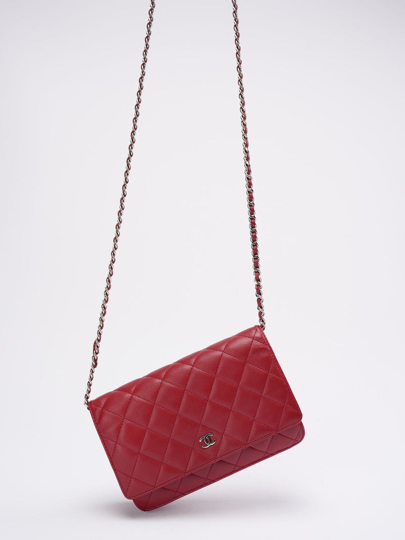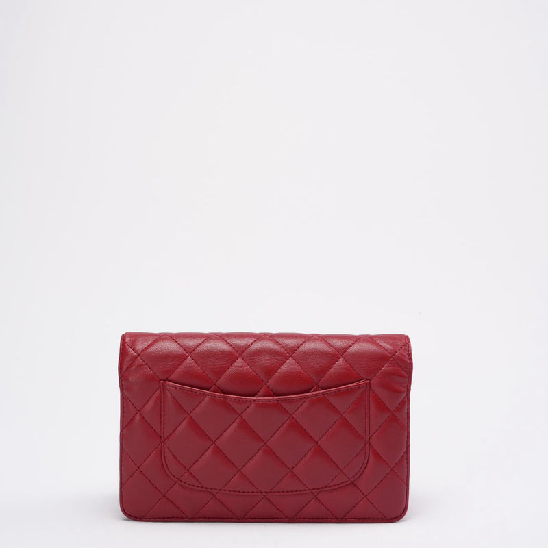 Chanel Geldbörse mit Kette aus rotem Lammleder (WOC) 2011