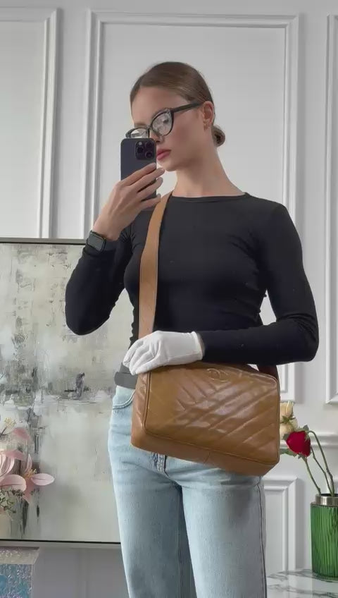 Chanel Vintage Caramel Caviar Diagonal Crossbody Bag