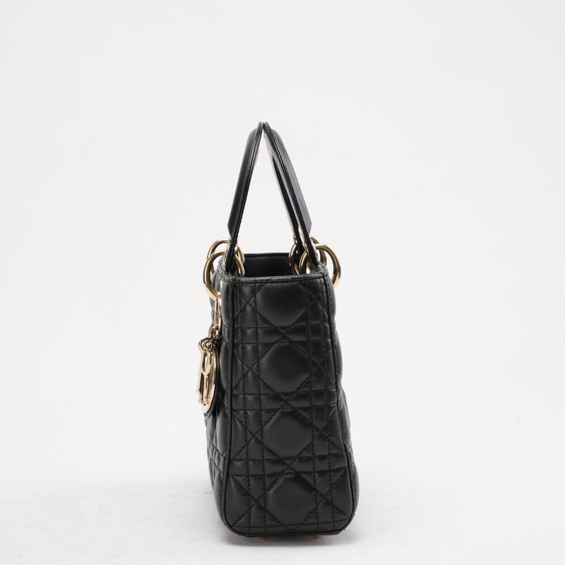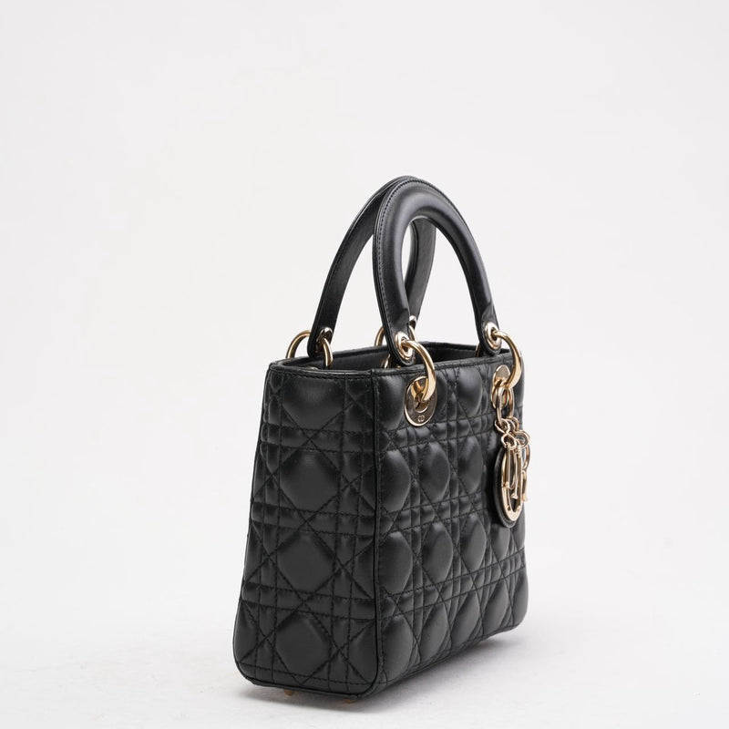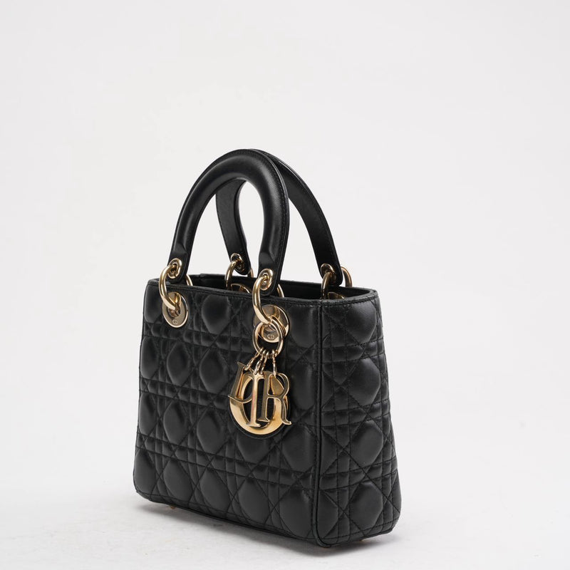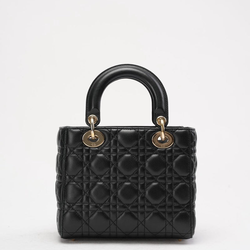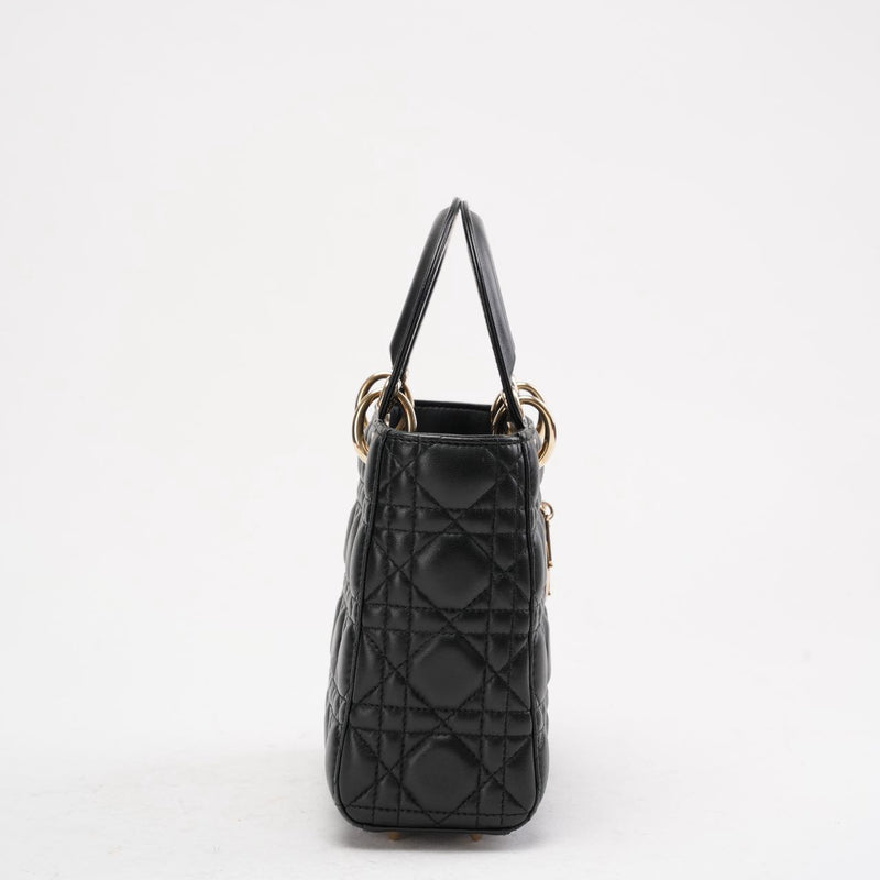 The Small Lady Dior My ABCDior in Black Cannage Lambskin is one of Dior’s most beloved icons — a perfect balance of elegance, craftsmanship, and modern personalization. This 2017 edition showcases the house’s signature architectural Cannage stitching, luxurious lambskin leather, and the unmistakable D.I.O.R. charms in shining golden hardware.