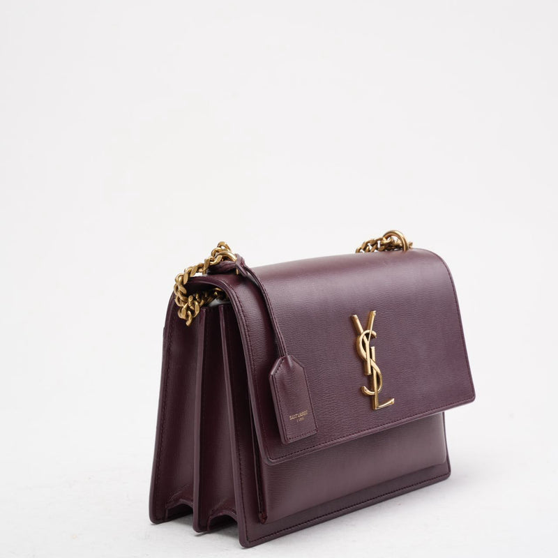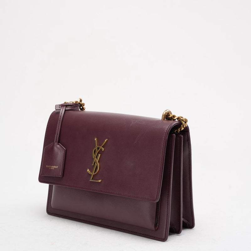 Saint Laurent Medium Burgundy Sunset Box Leder