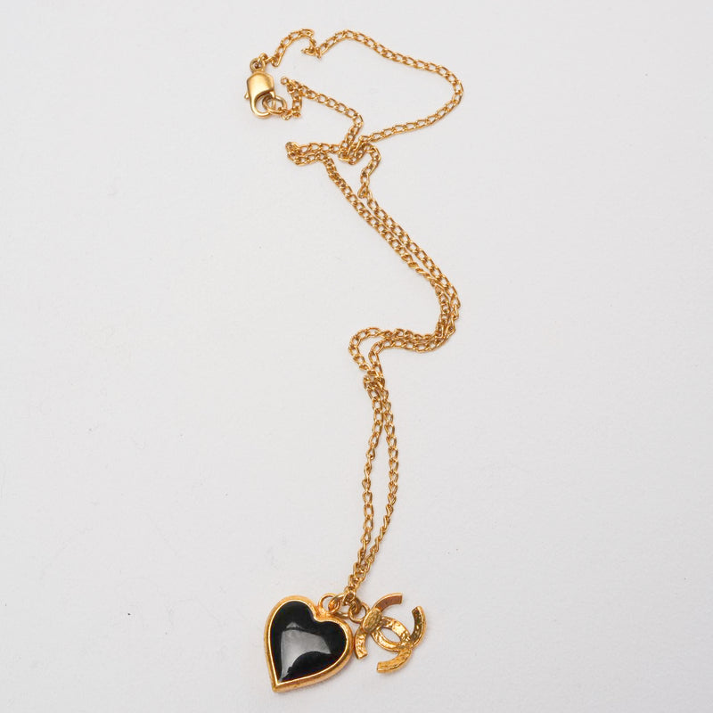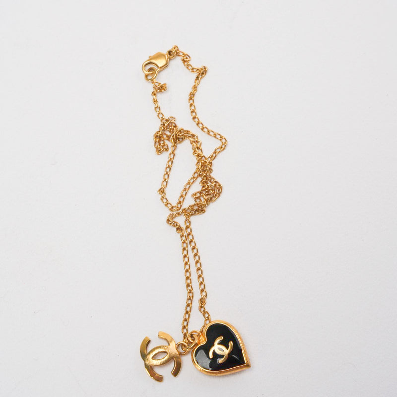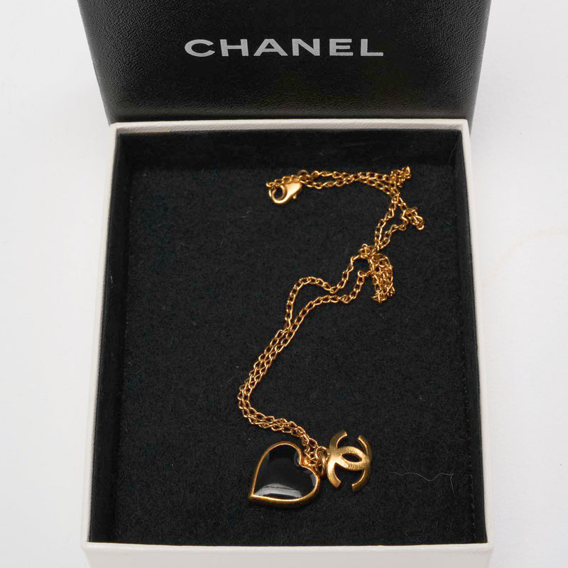 A stylish and fun statement piece from the maison is the 40 cm Chanel Black and Gold Heart CC Enamel Necklace. It combines elegance and a dash of whimsy with its heart-shaped pendant, which is embellished with the recognisable interlocking CC logo in gold-tone metal and black enamel. It is perfect for layering or wearing alone as a striking accessory because the 40 cm chain fits comfortably around the neckline.