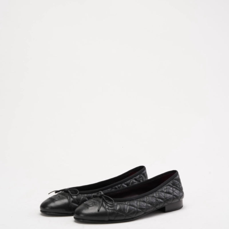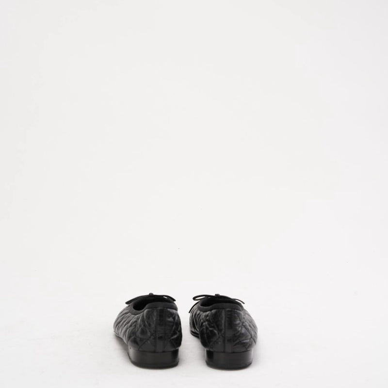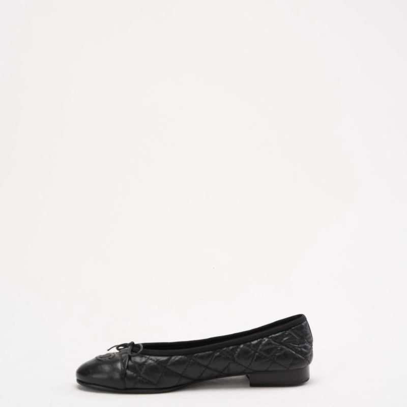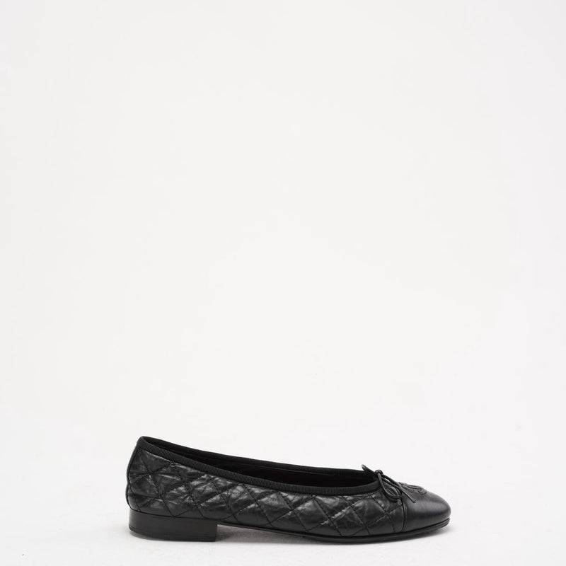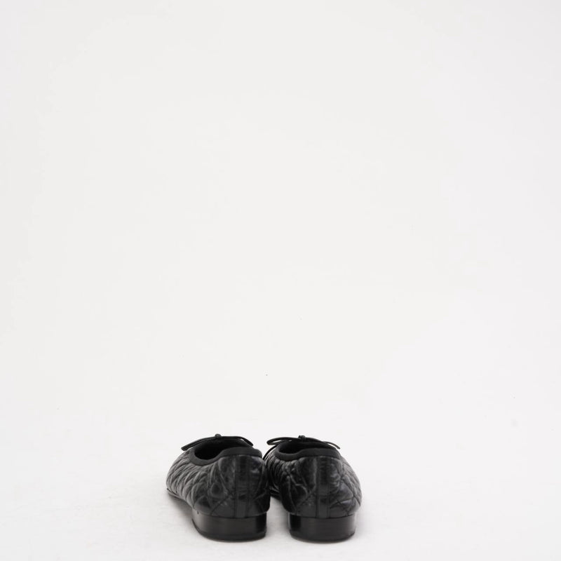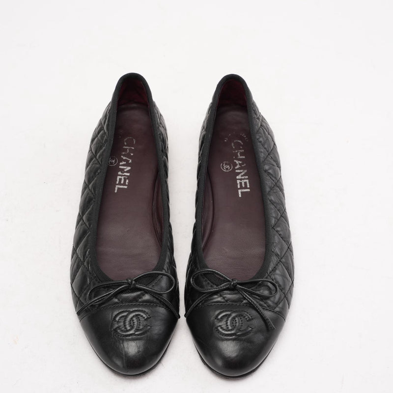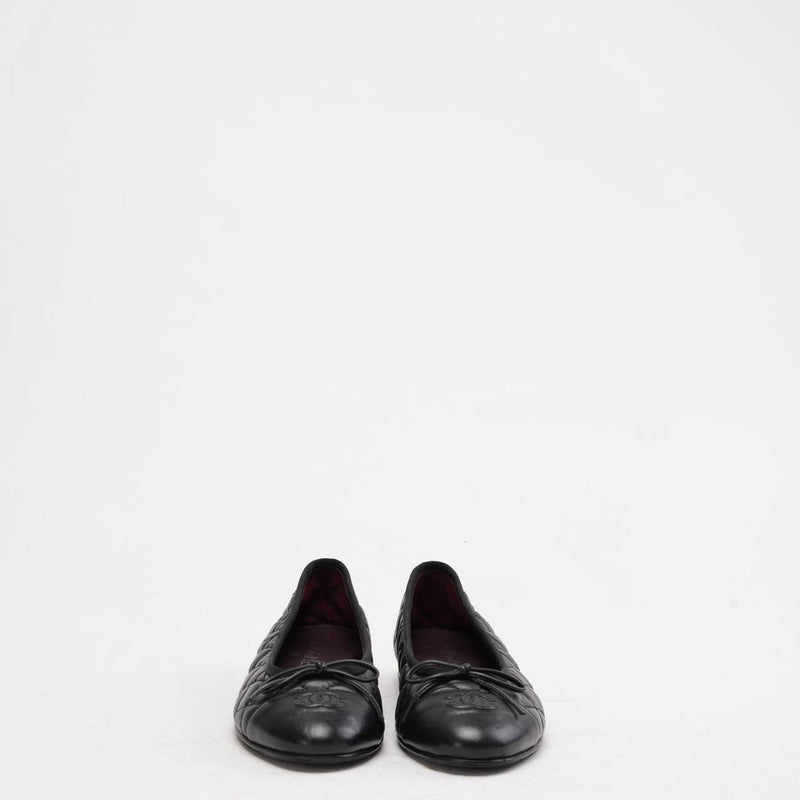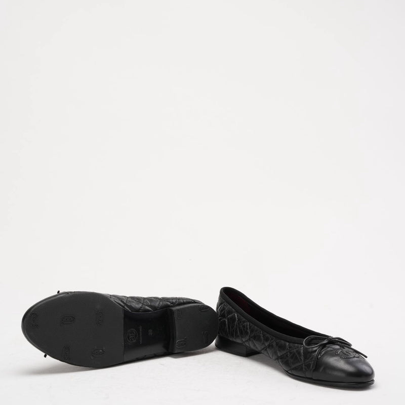 Chanel Black Quilted Leather CC Bow Ballet Flats Size 38