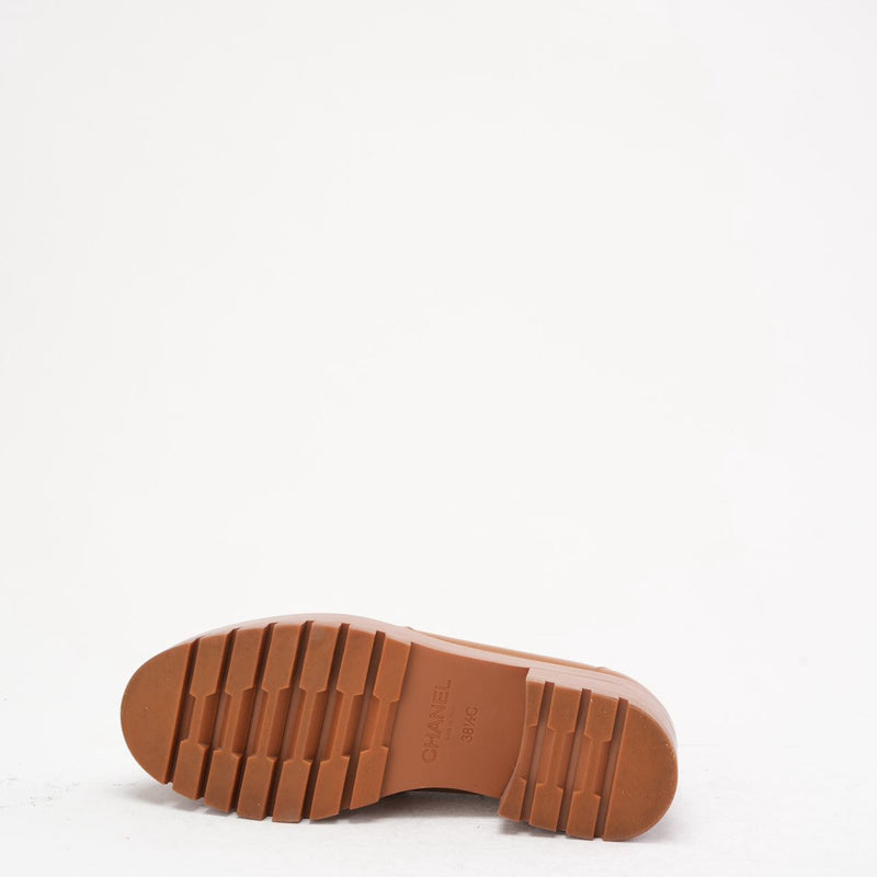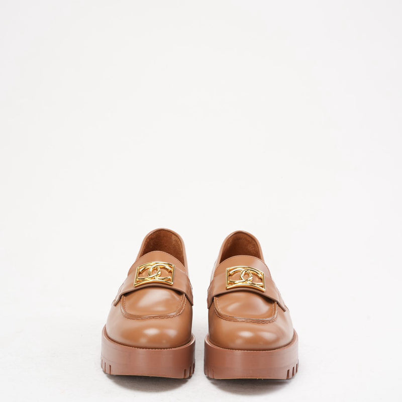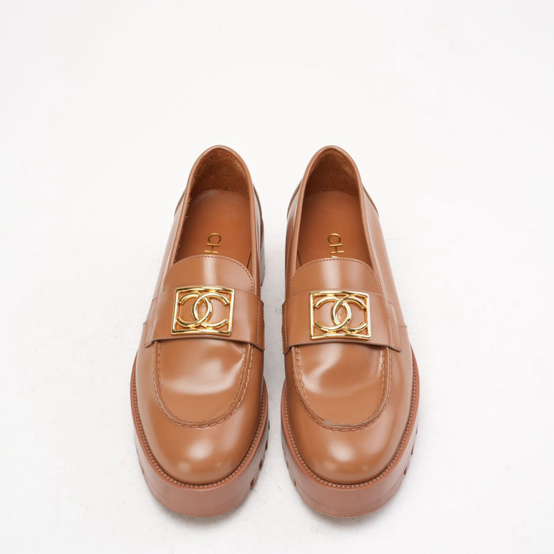 Chanel Brown CC Logo Loafer Leather Size 38.5