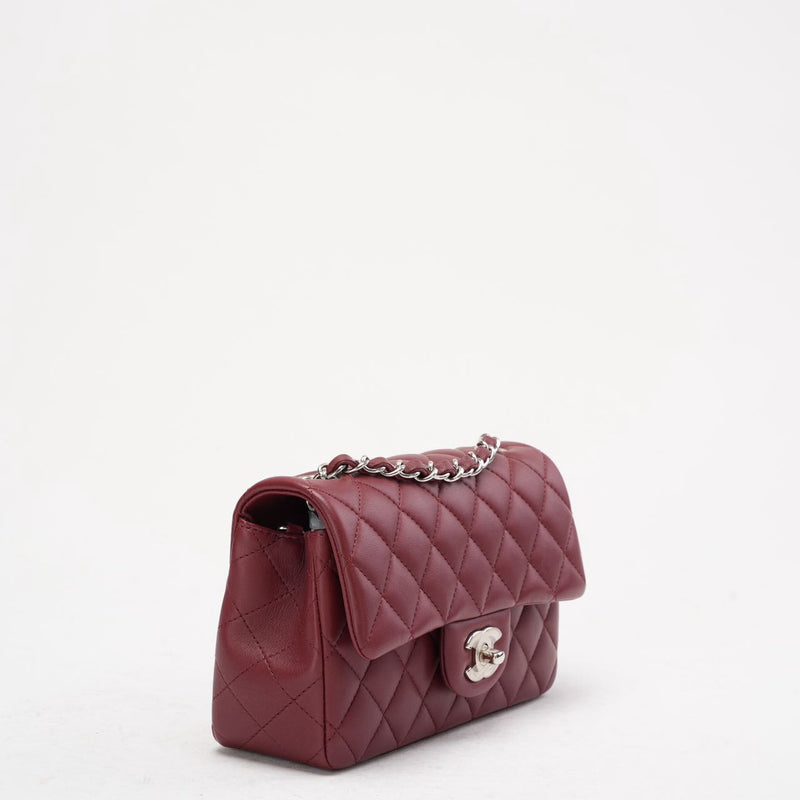 A modern classic from 2020, this Chanel Mini Tangle Classic Flap Bag is crafted in rich Burgundy Red leather — bold, elegant, and timeless. Featuring the iconic interlocking CC turn-lock closure and silver-tone hardware, it embodies Chanel’s signature sophistication in a compact, versatile silhouette. The bag is perfect for day or evening wear, offering a refined touch of luxury to any ensemble. Arrives in excellent pre-loved condition, ready to be cherished.
