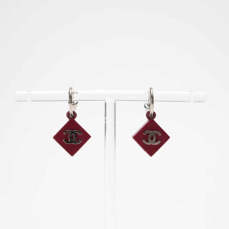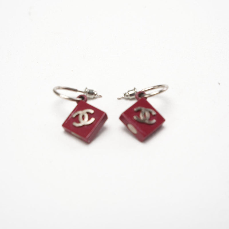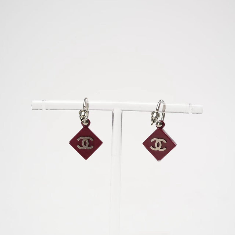 Chanel CC Burgundy Red Enamel Silver Tone Earrings