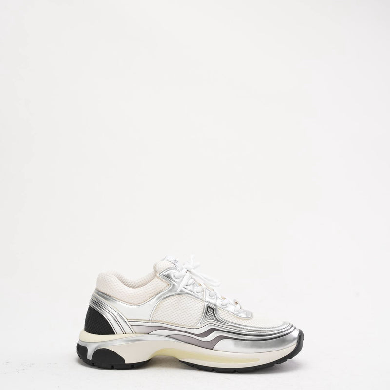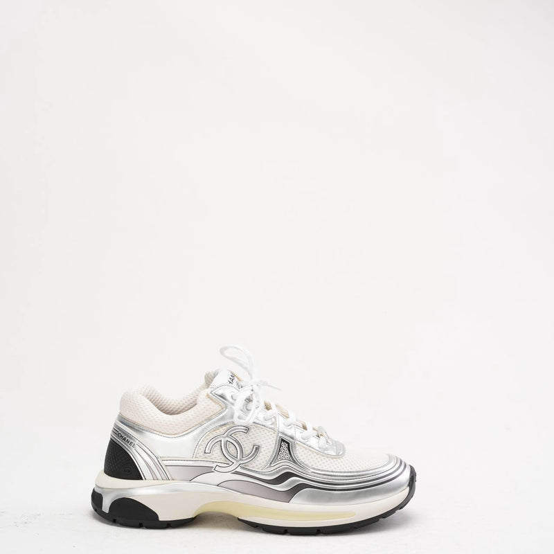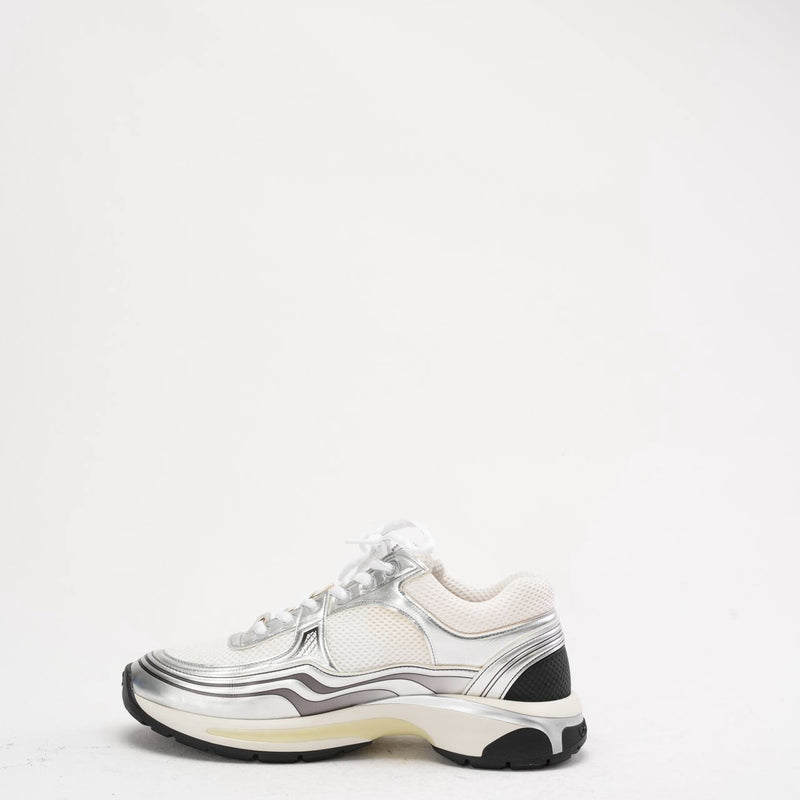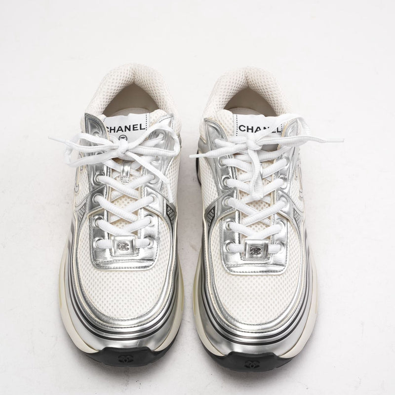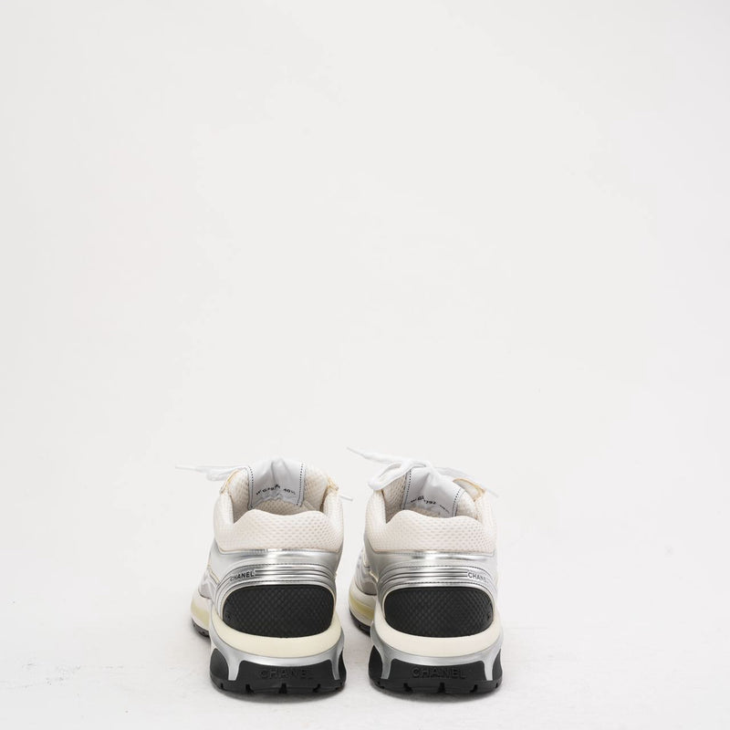 Chanel CC Logo Sneaker in White and Silver 40.5
