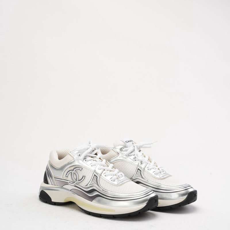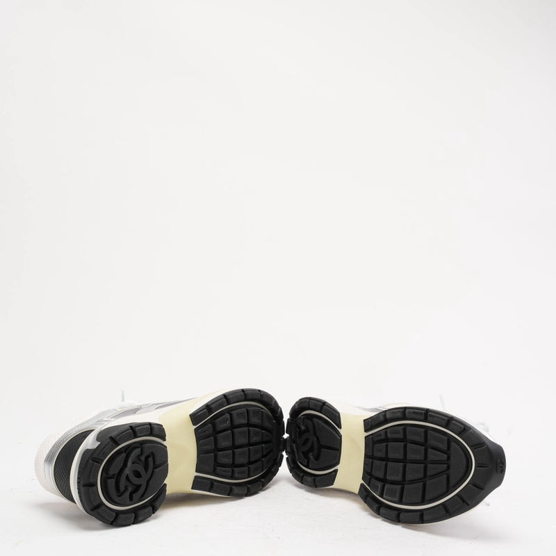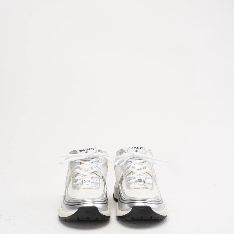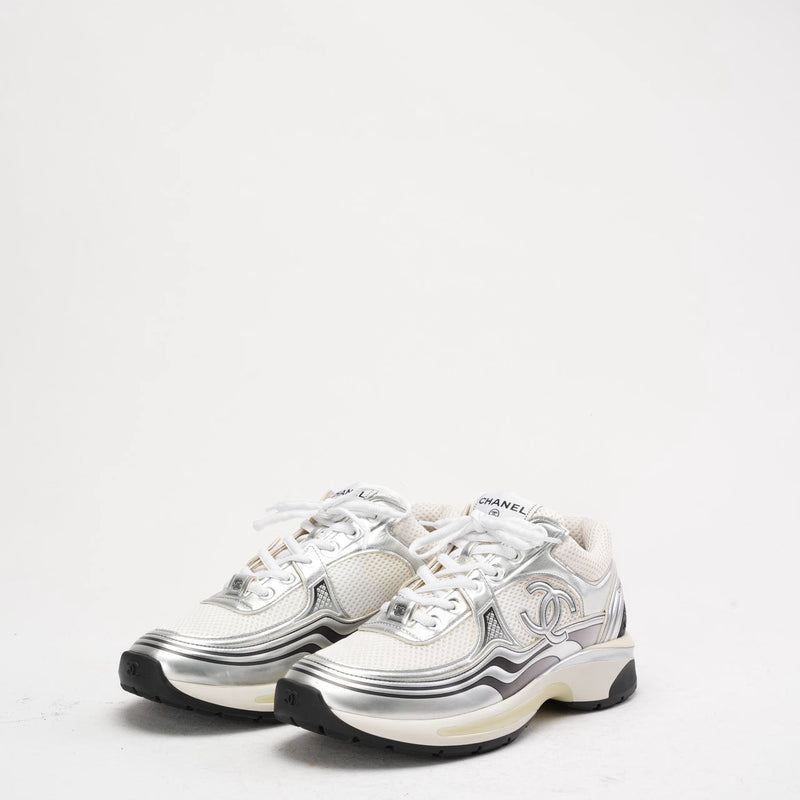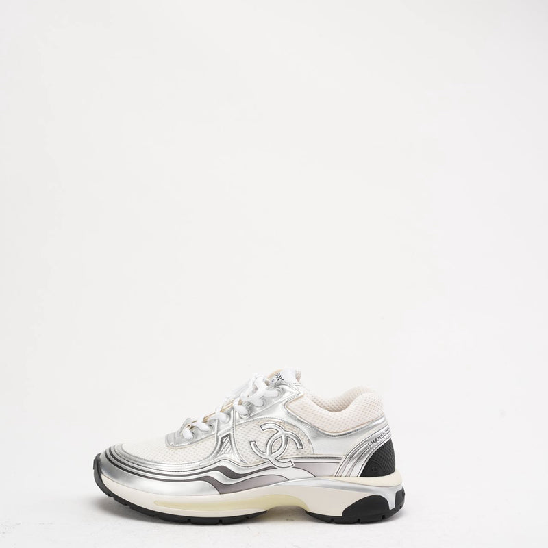 Chanel CC Logo Sneaker in White and Silver 40.5