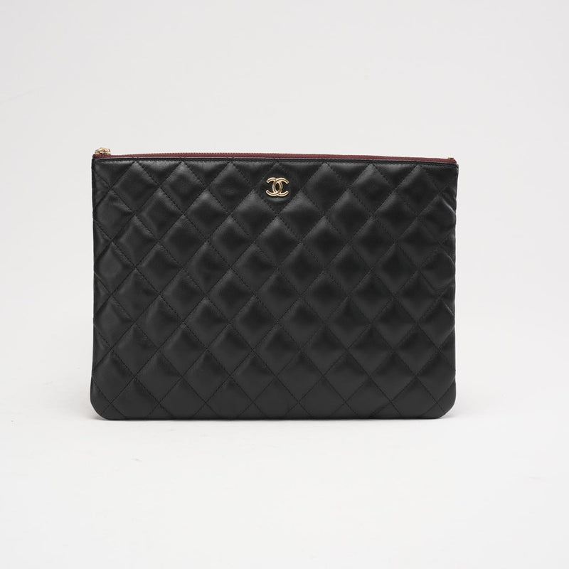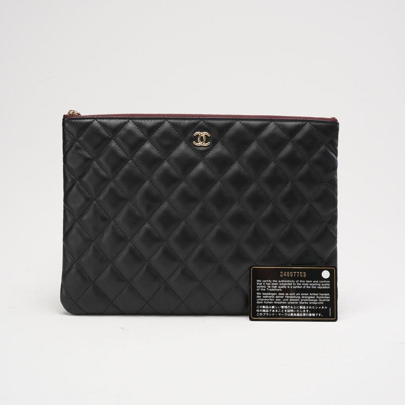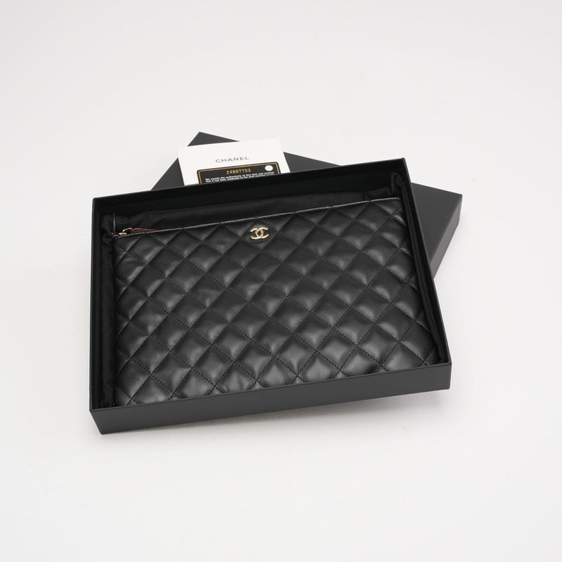 This elegant Chanel Classic Clutch New Medium in black leather with gold hardware was produced in 2018. Sophisticated and versatile, the clutch features Chanel’s signature quilted design and iconic CC logo, reflecting the house’s timeless craftsmanship. The medium size offers enough space for daily essentials, making it perfect for both day and evening occasions.