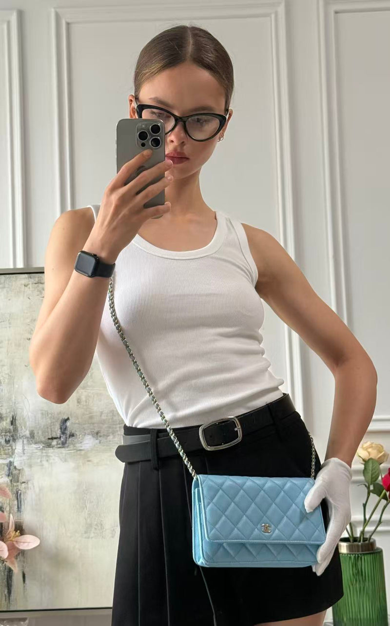 Chanel Classic Wallet on Chain Light Blue Caviar Leather Woc