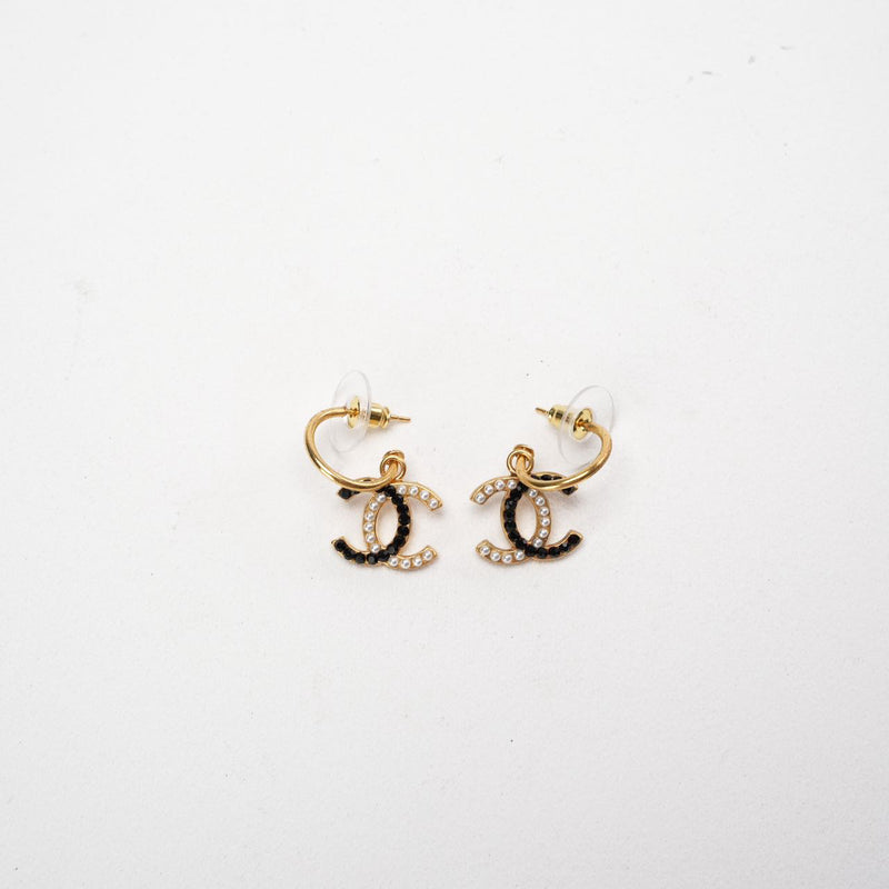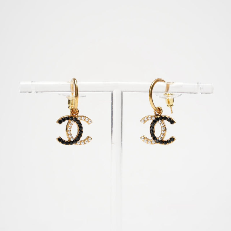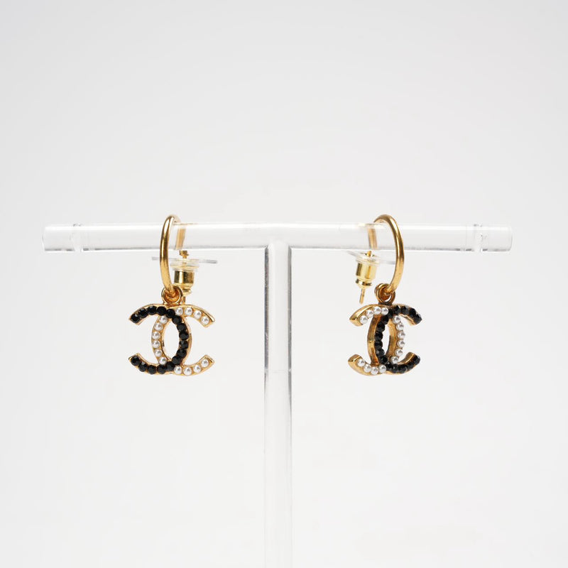 Chanel Faux Pearl/Black Gold Tone CC Earrings