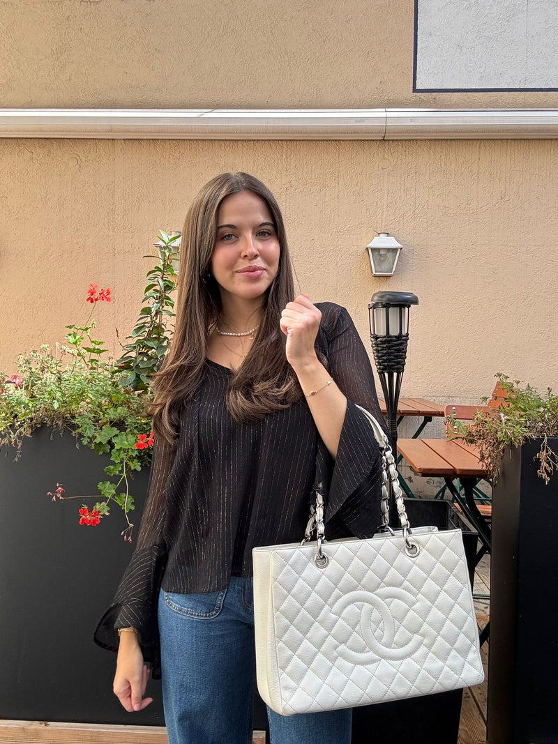 Sac cabas Chanel Medium Grand Shopping en cuir Cavier blanc avec détails dorés