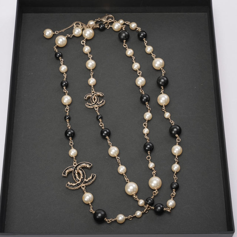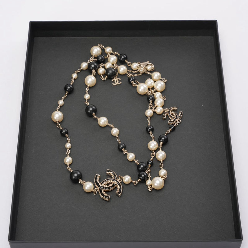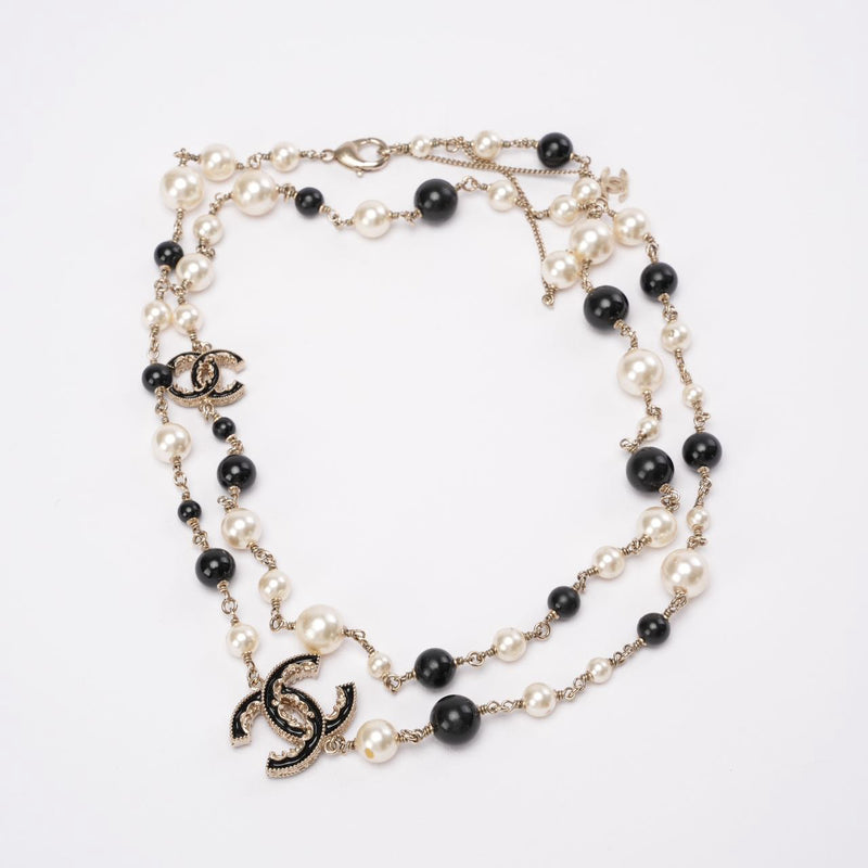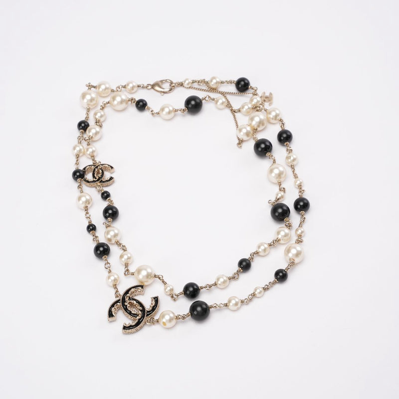 Chanel Pearl / Black Beads CC Baroque Sautoir Necklace