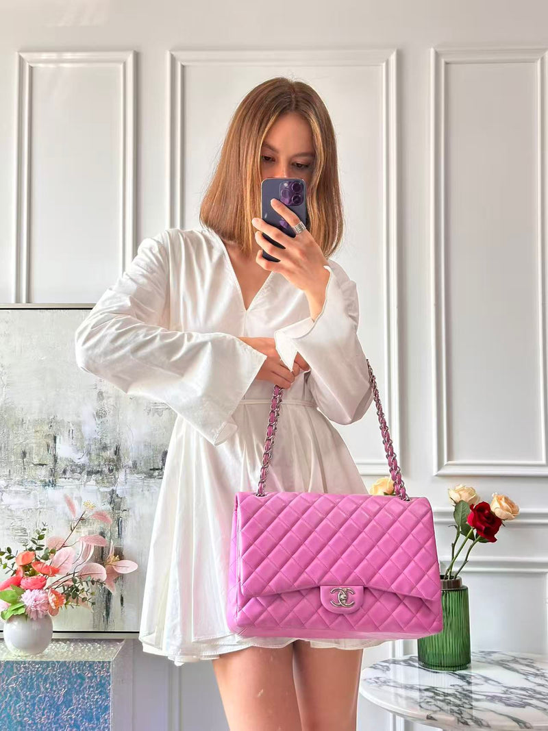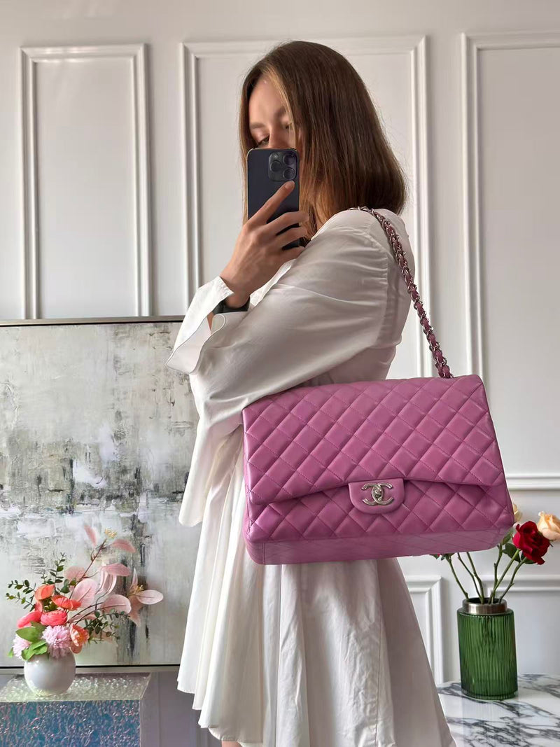 Chanel Timeless Classic Flap Bag Maxi Lilac Purple with Silver Hardware