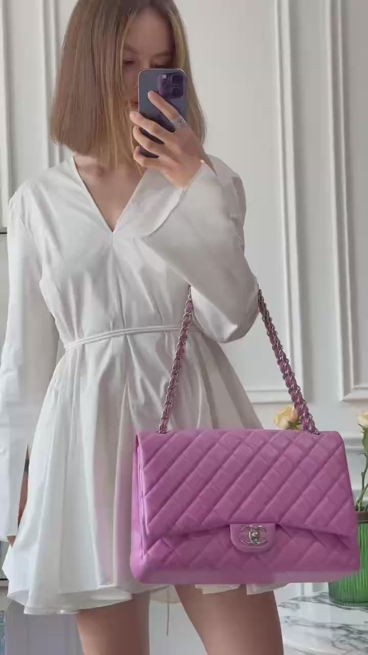 Add a rare and radiant piece to your collection with this authentic preloved Chanel Timeless Jumbo Classic Flap Bag in stunning lilac purple quilted leather with elegant silver-tone hardware. A bold yet feminine take on the iconic flap bag, this statement piece offers the perfect blend of Chanel heritage and modern flair.
