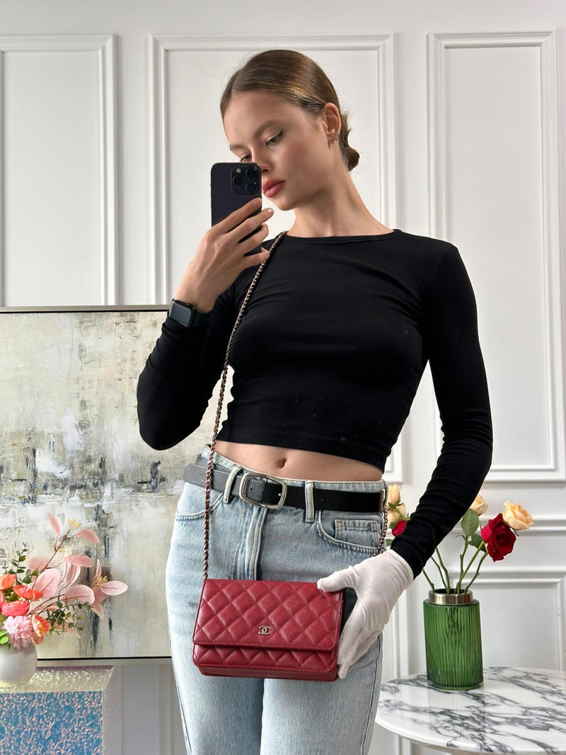 Chanel Wallet on Chain( woc) Bag Red Caviar Leather
