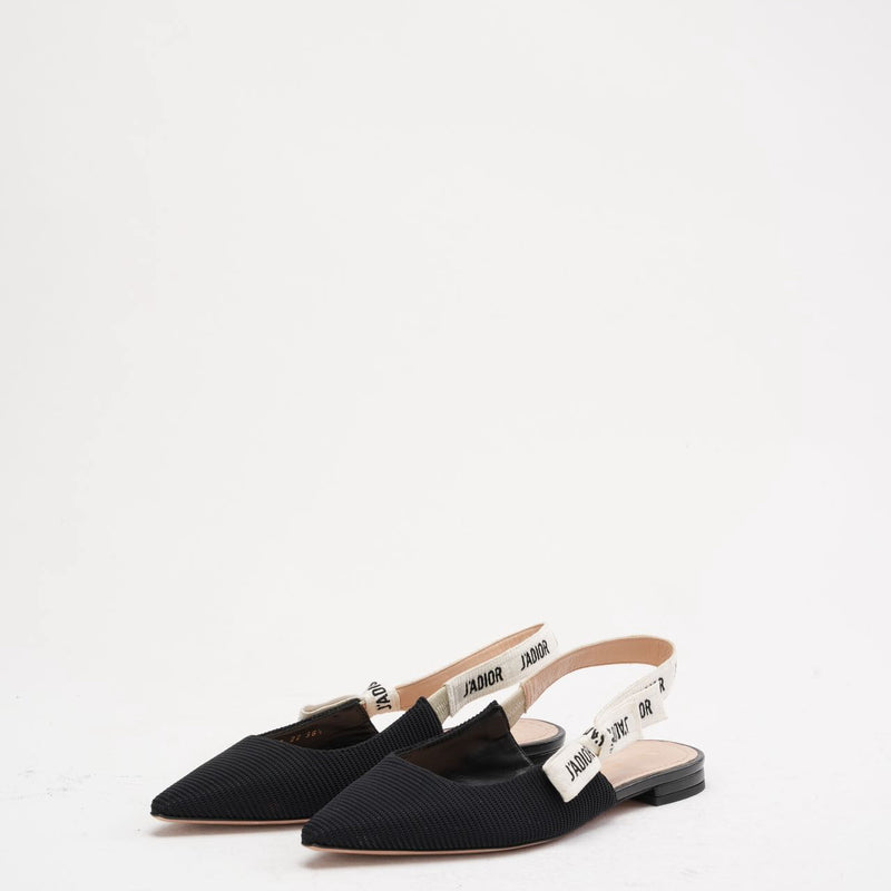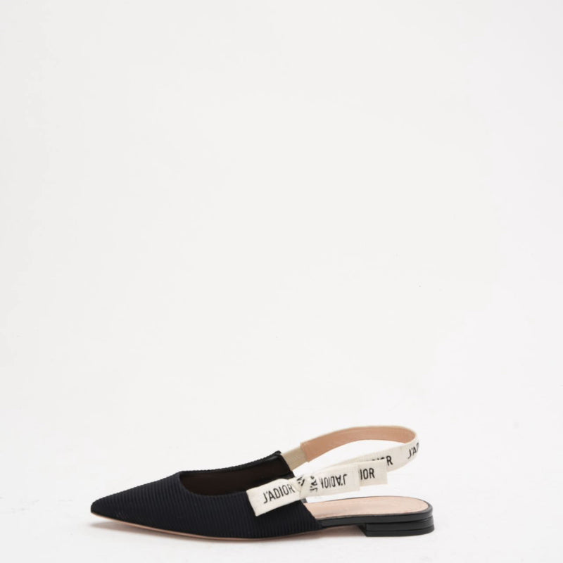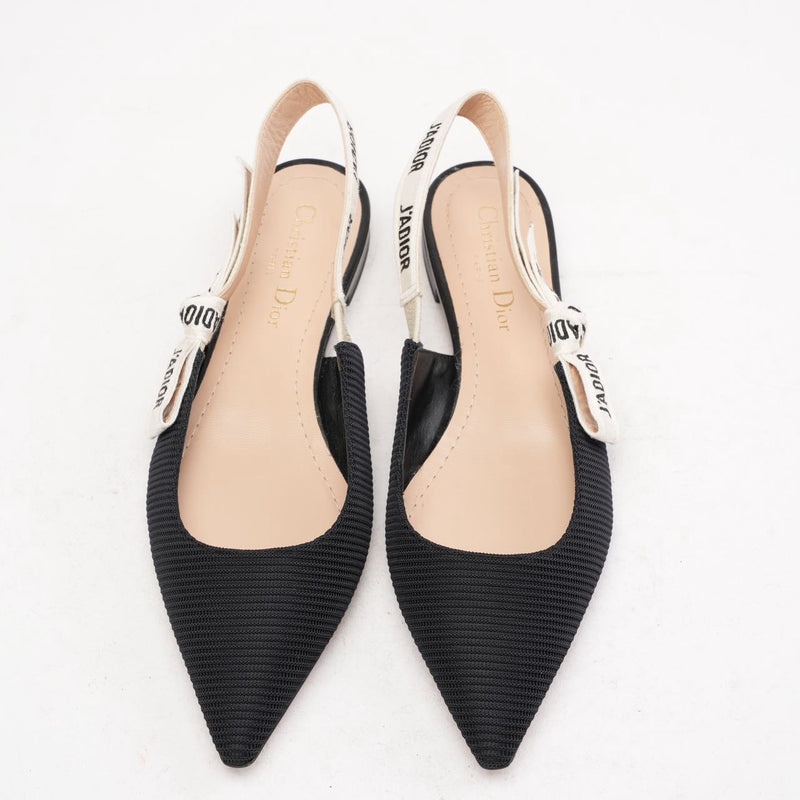 Christian Dior Ribbon Black Fabric J'adior Slingback Size 38.5