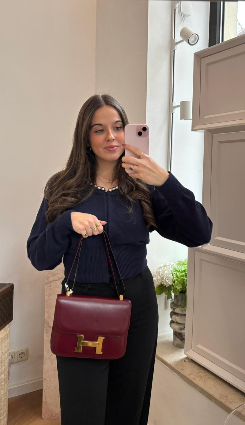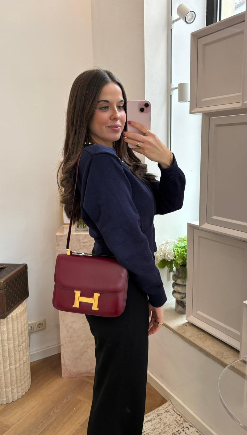 The Hermès Vintage Constance 24 in Burgundy Box Leather (1980s) is a refined symbol of timeless elegance and understated luxury. Crafted from lustrous Box Calf leather in a deep, sophisticated burgundy tone, this vintage beauty features the iconic gold “H” clasp—a hallmark of Hermès craftsmanship. The structured silhouette and adjustable leather strap offer both versatility and classic appeal, allowing the bag to be worn over the shoulder or crossbody for effortless sophistication.