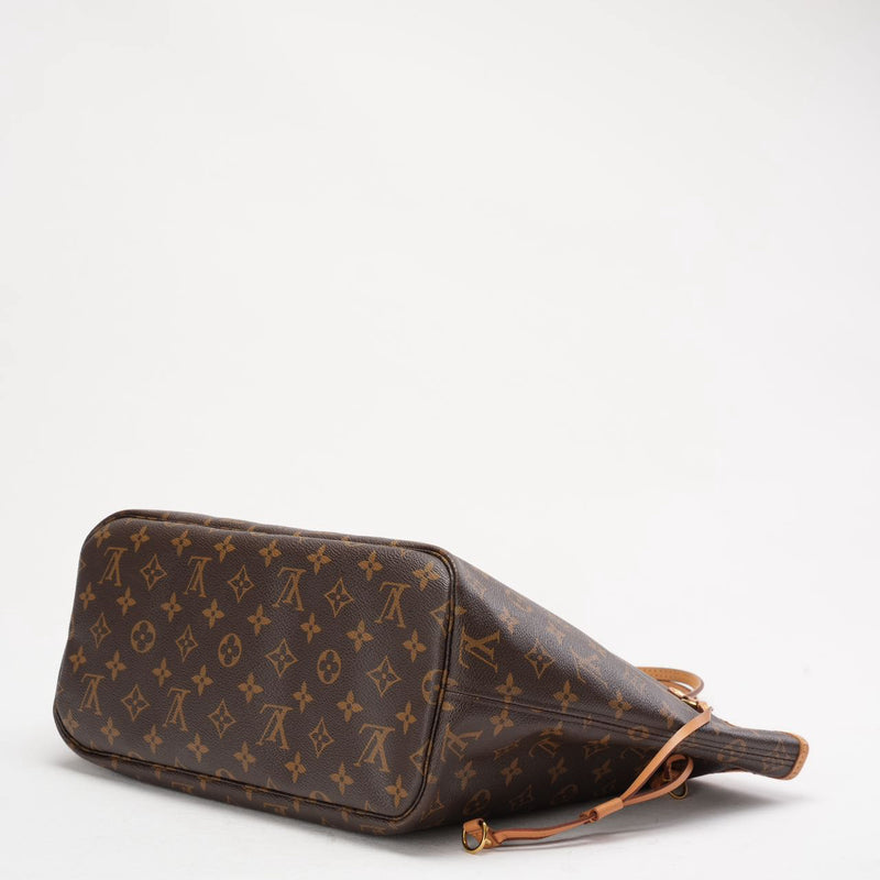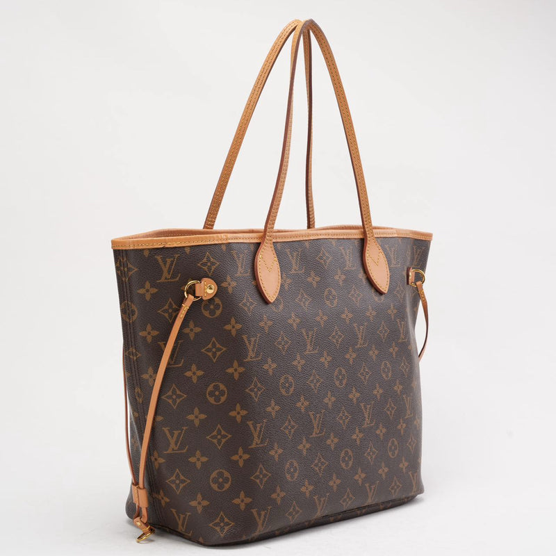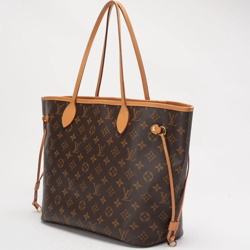 This Louis Vuitton Neverfull MM Handbag is a contemporary classic with gold-tone hardware and natural cowhide leather trim. It is made from the brand's recognisable brown monogrammed canvas. It was produced in 2018 and features slim leather handles for comfortable shoulder carrying, as well as an open, spacious interior. It is perfect for everyday use and can be worn on the shoulder for convenient functionality or carried by hand for a sophisticated look. The classic and versatile Neverfull MM is one of Louis Vuitton's most iconic and sought-after designs.