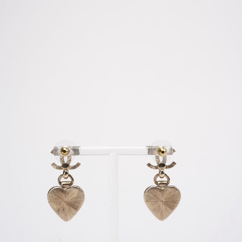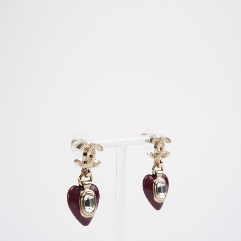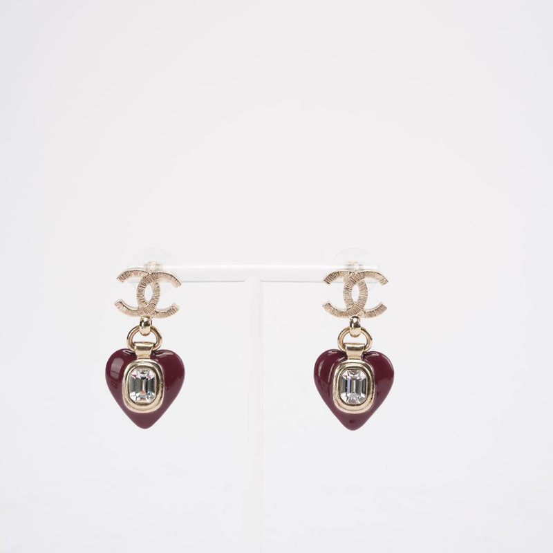 Chanel B21 K CC Heart Drop Earrings Metal with Resin/ Crystals