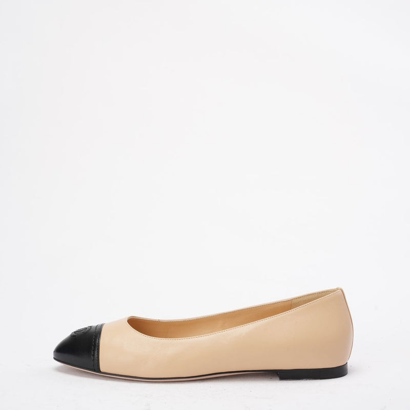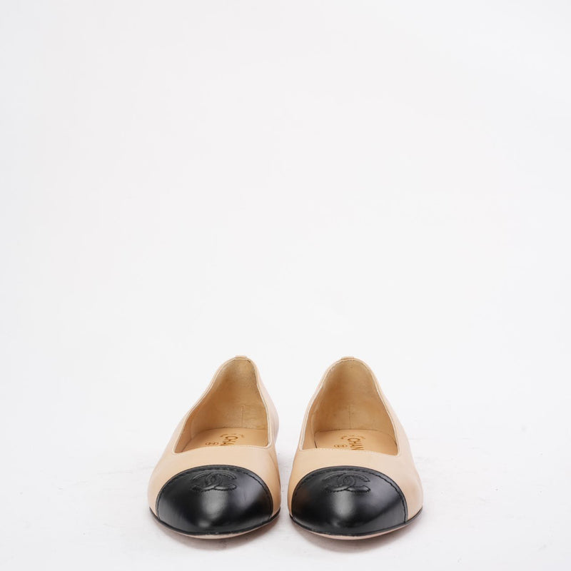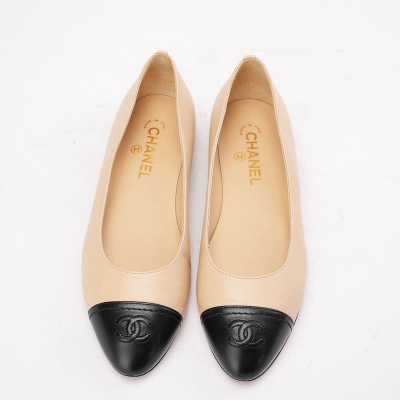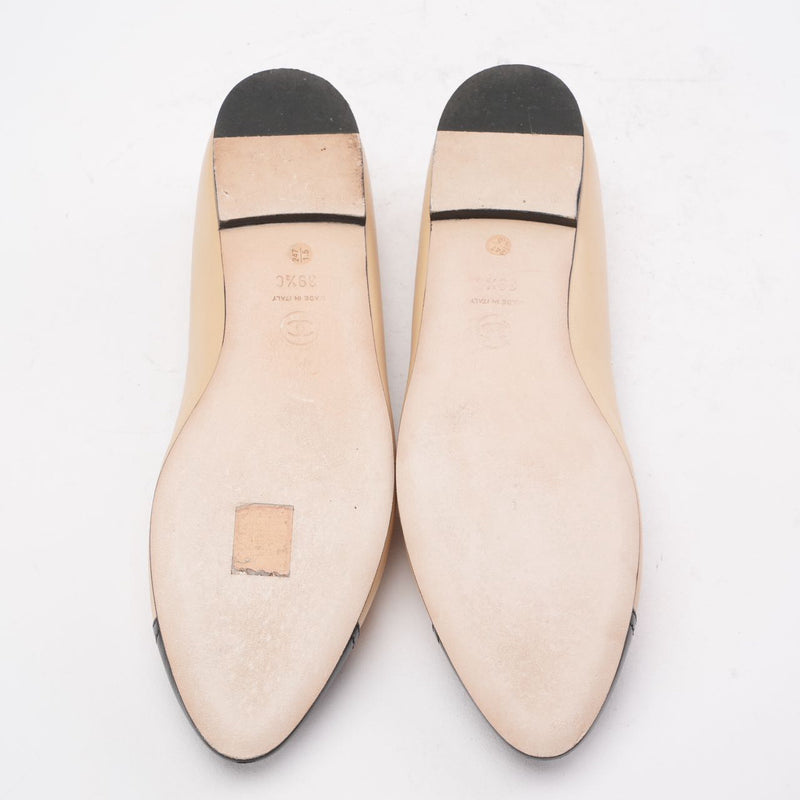 Chanel Beige/Black CC Cap Toe Ballet Flats Size 39.5