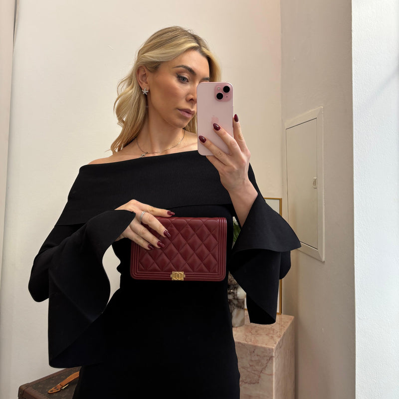 Bold, sophisticated, and unmistakably Chanel — this Burgundy Boy Wallet on Chain (WOC) is a striking statement piece from the 2017 collection, crafted in rich quilted lambskin leather and finished with ruthenium-finish Boy CC clasp hardware.