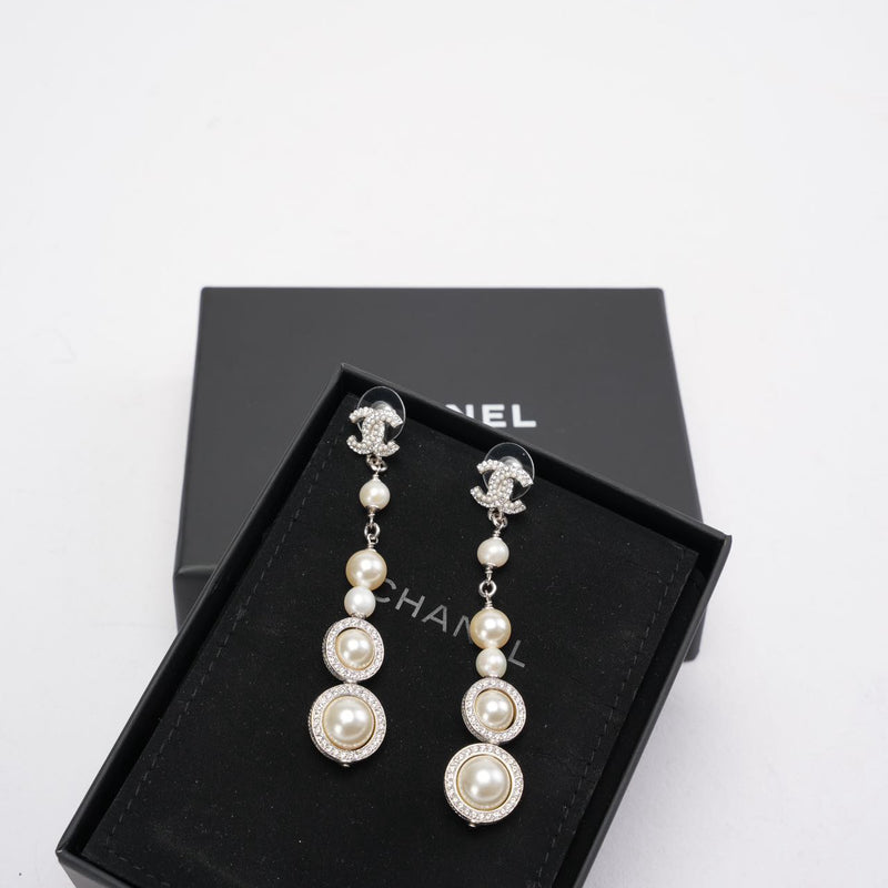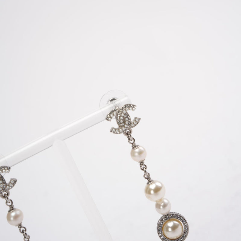 Chanel CC Sliver Pearl White and Crystals Earrings