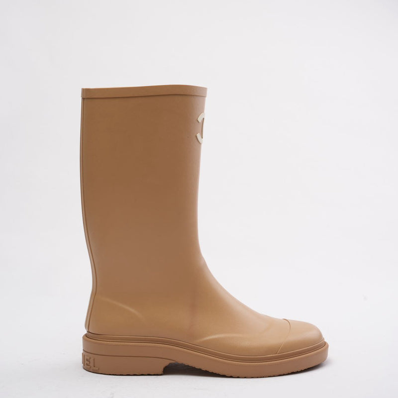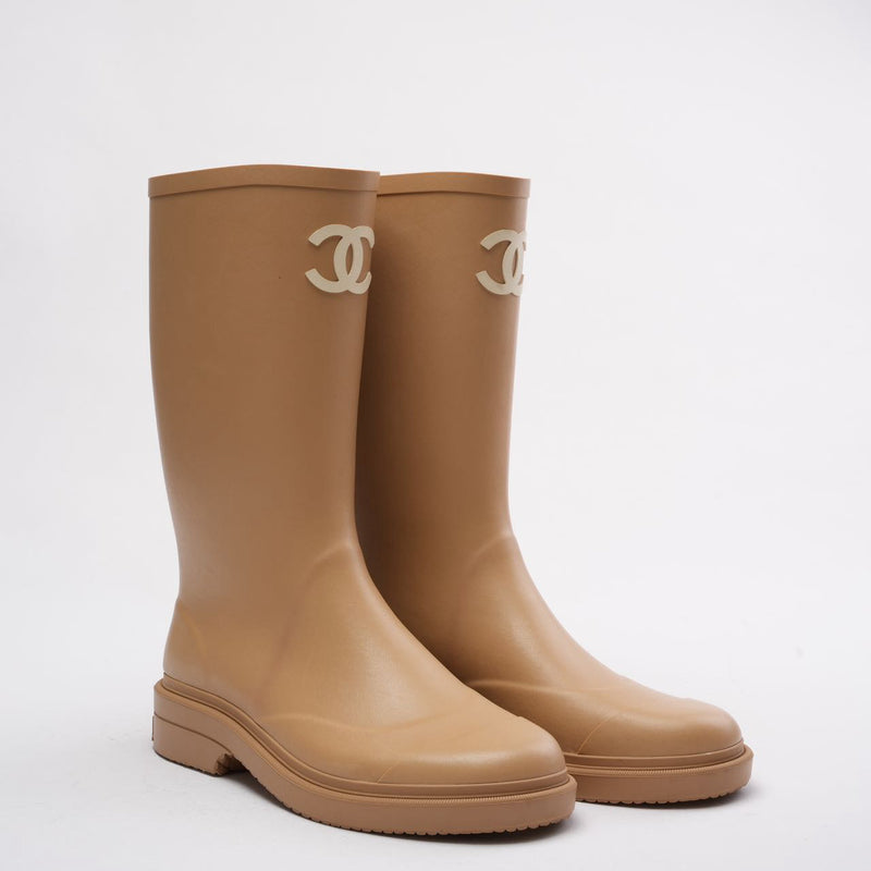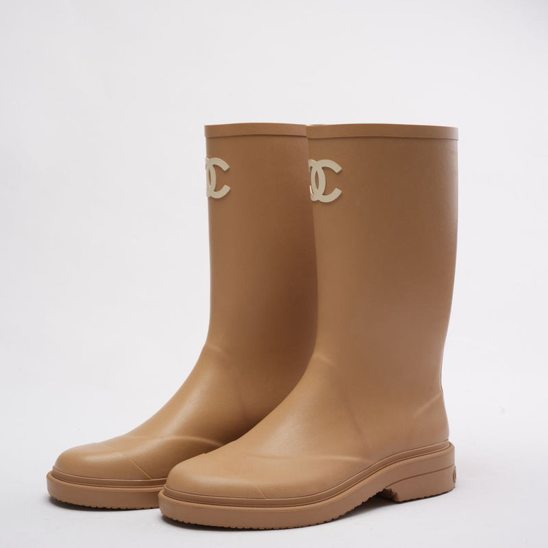 Chanel Classic Rain Boots Beige with CC Logo 42