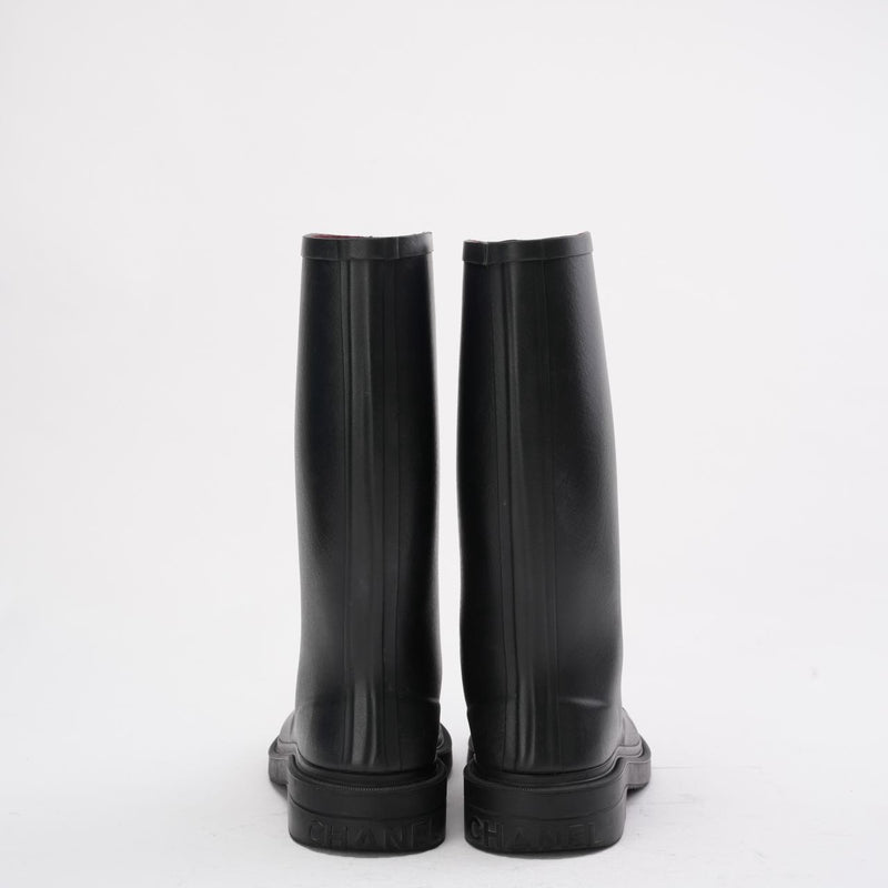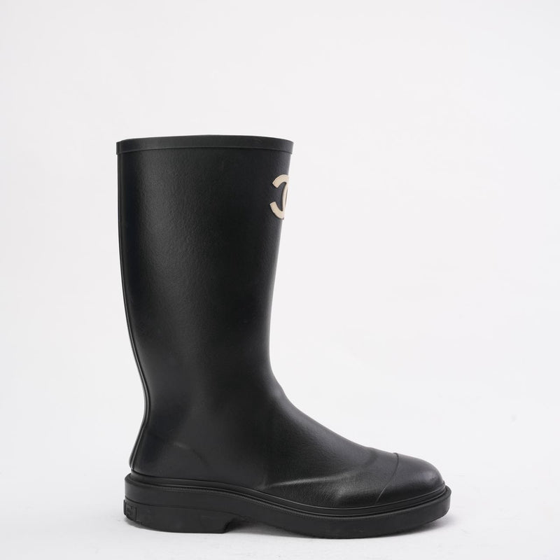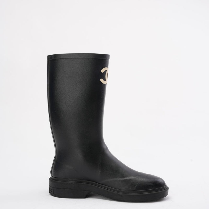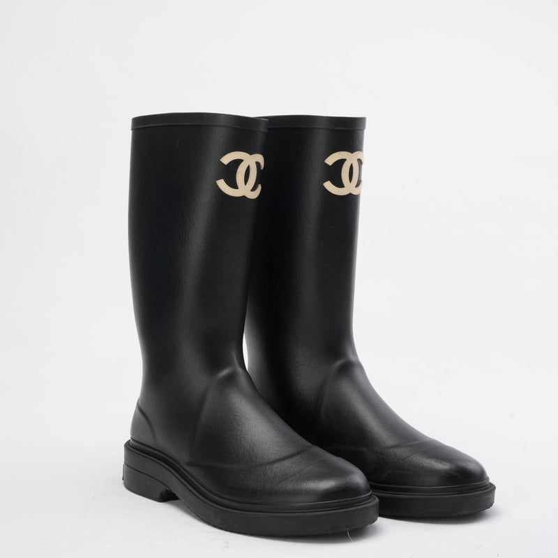 Chanel Classic Rain Boots in Black/White With CC Logo 39