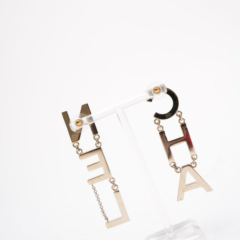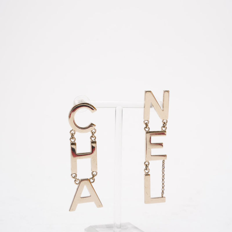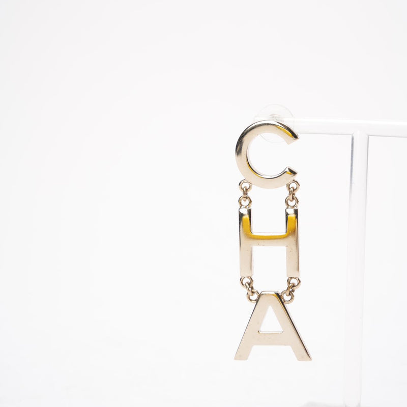 Chanel Gold Metal 'CHA' 'NEL' Logo Letter Drop Earrings